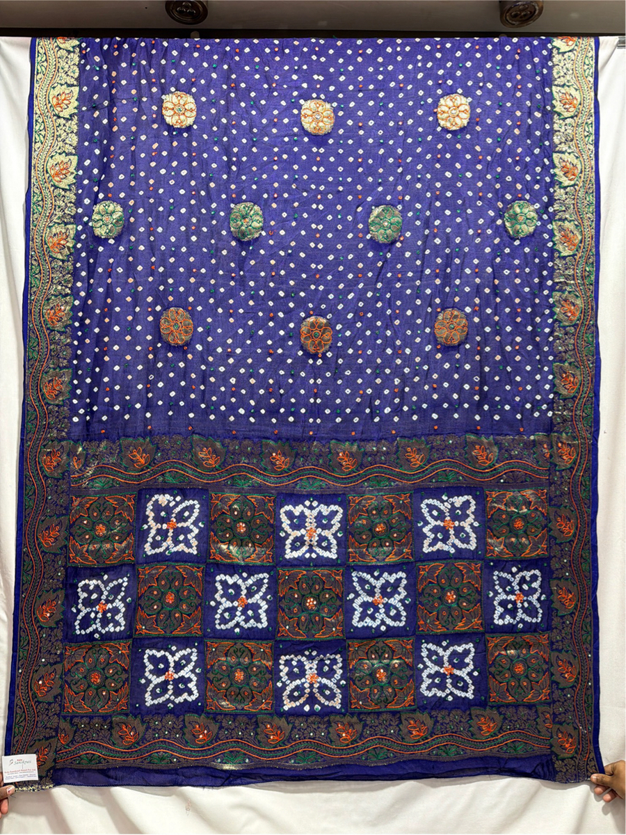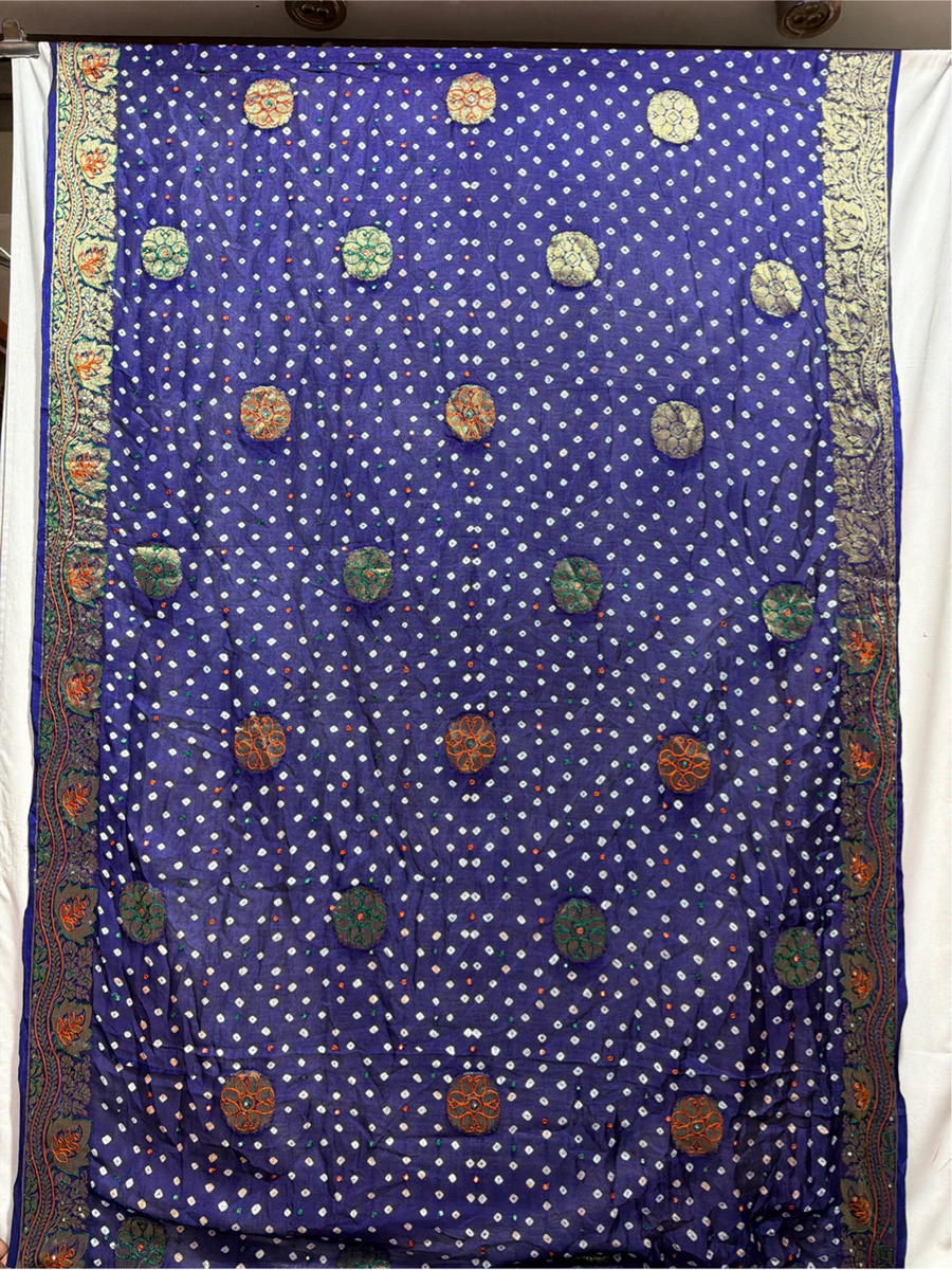 Kala Sanskruti All Over Blue Color Art silk Bandhani Saree With Hand Work 6.5M(Without Blouse)Elegant Traditional Wear Graceful Handcrafted Artistry For Woman