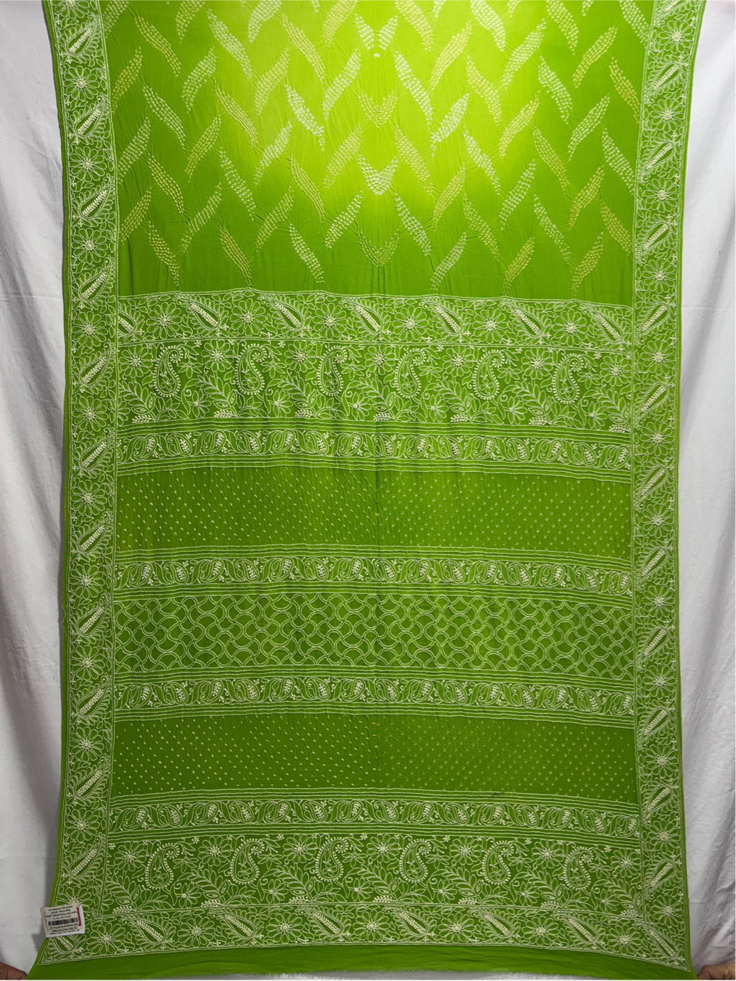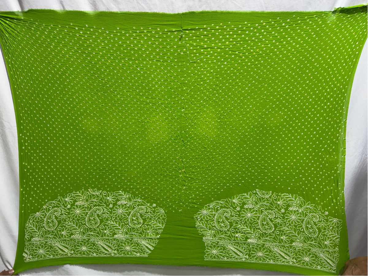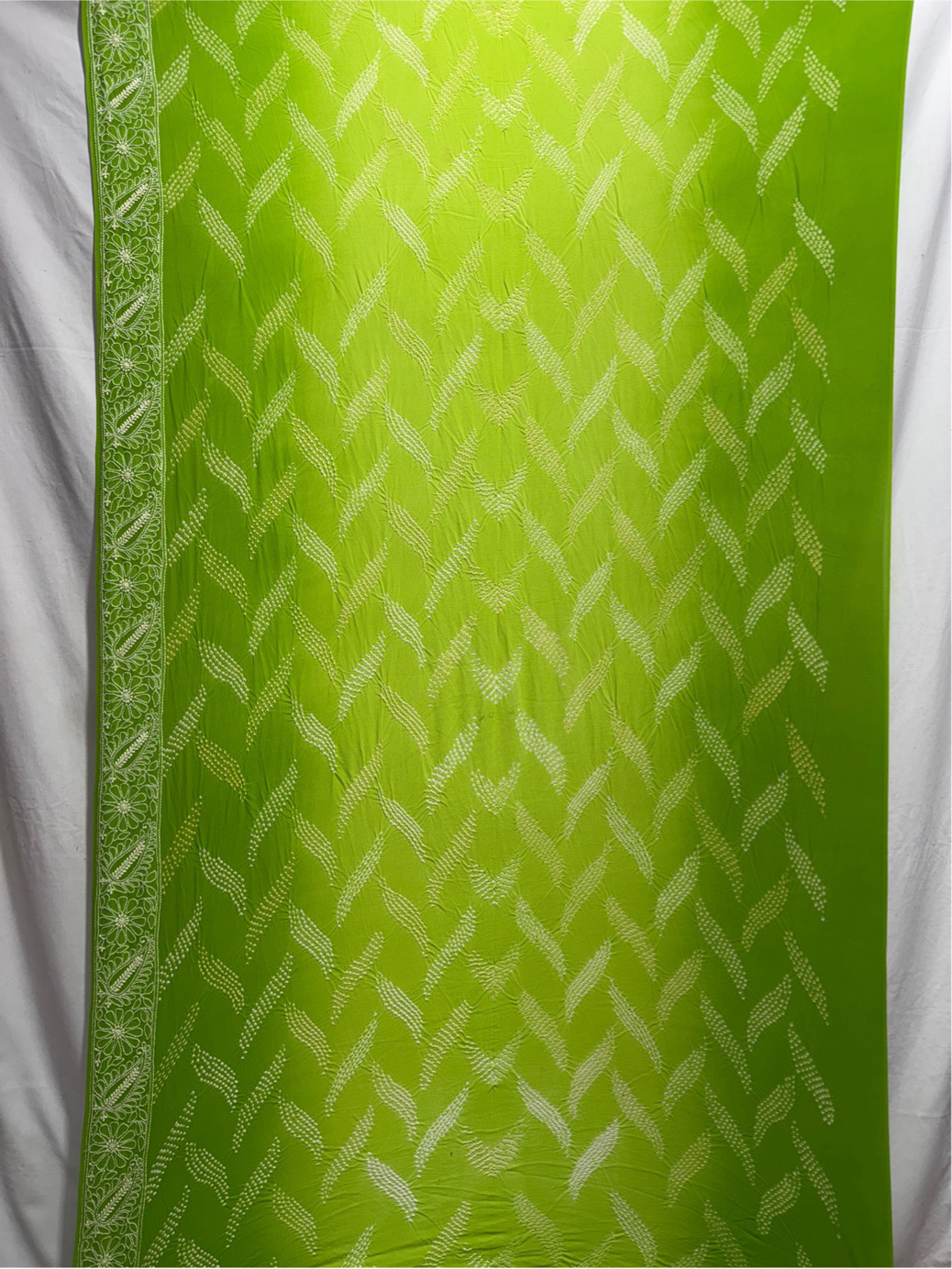 - Color & Work: Designed in a unique Light Dark Parrot shade, beautifully embellished with intricate Bandhani handwork, giving it a vibrant and traditional charm.
