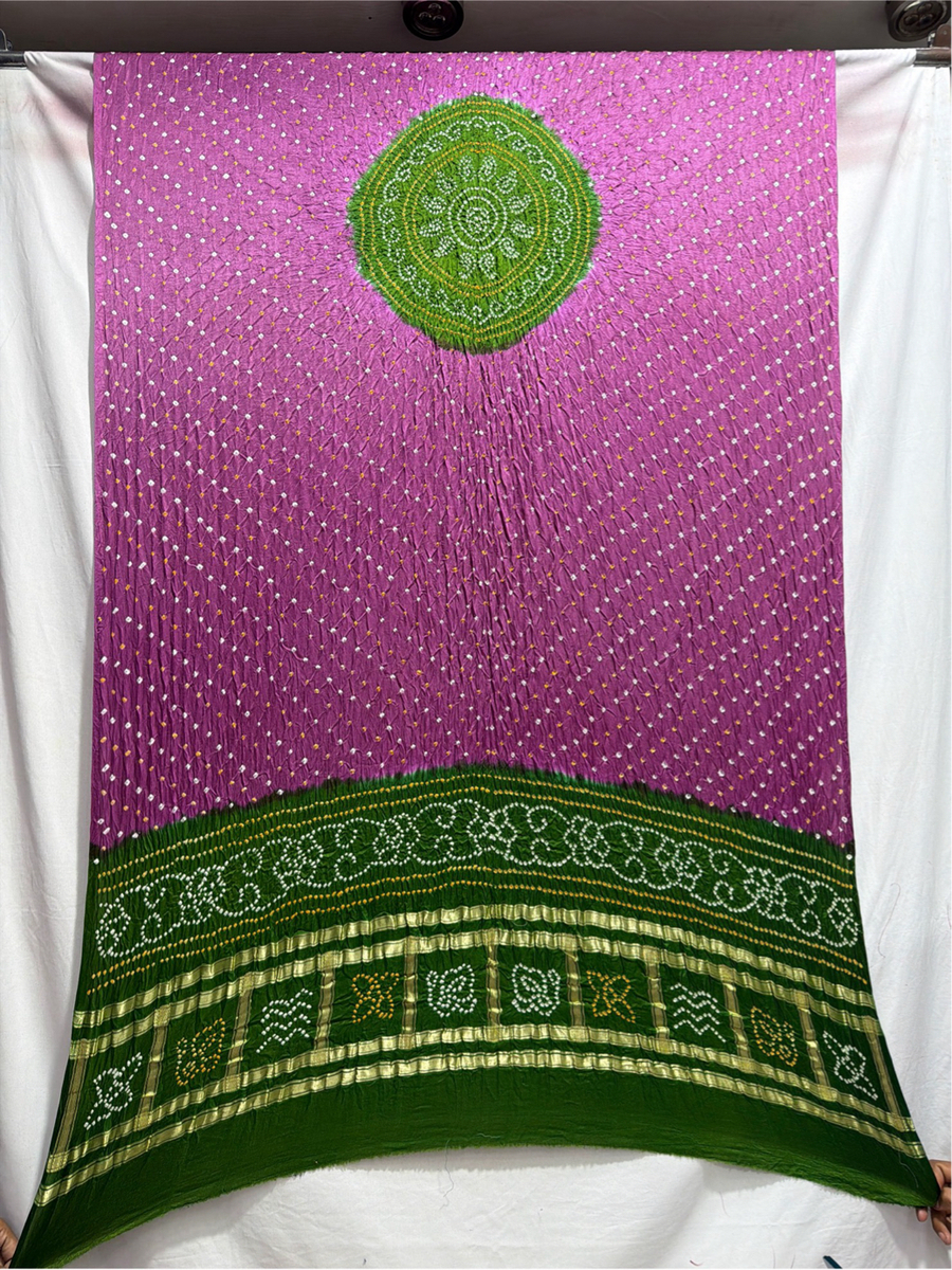 - Material: Crafted from premium Pure Gaji Silk with exquisite Hand Made Bandhani, offering a refined traditional look.