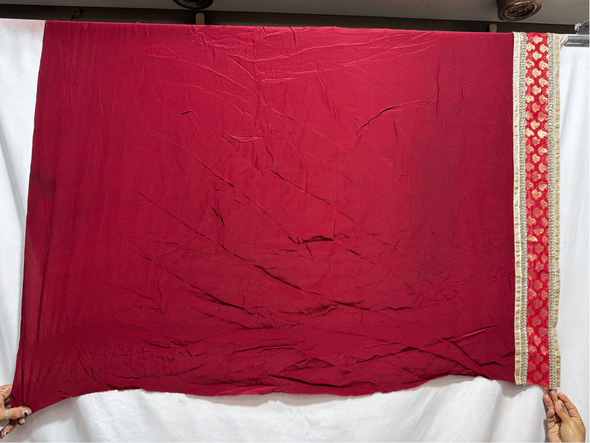 - Made from premium Banarasi Georgette fabric, known for its soft, lightweight texture and elegant drape.