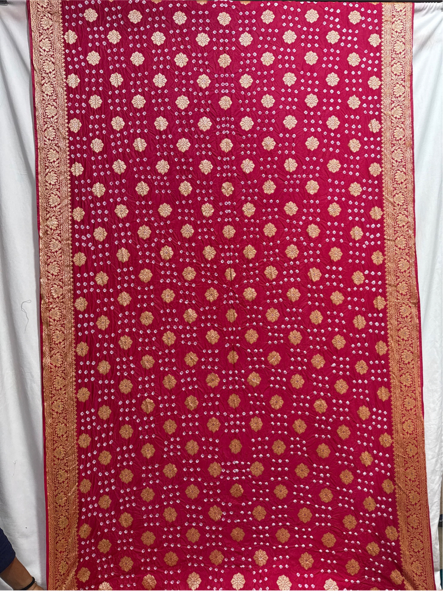 Hand Made Bandhani Saree Fabric