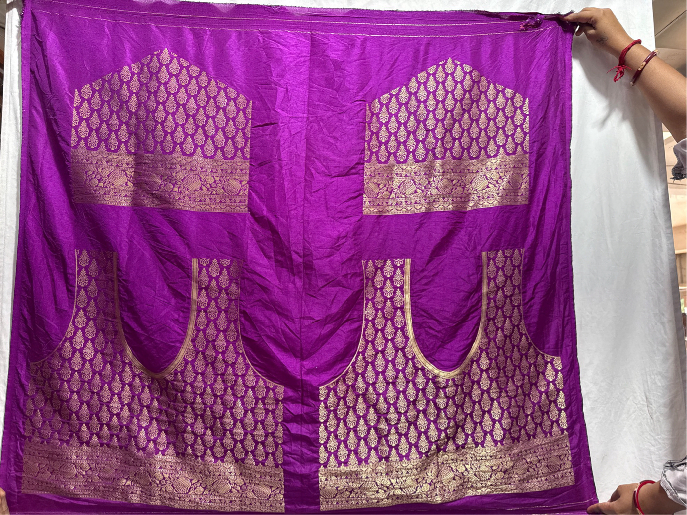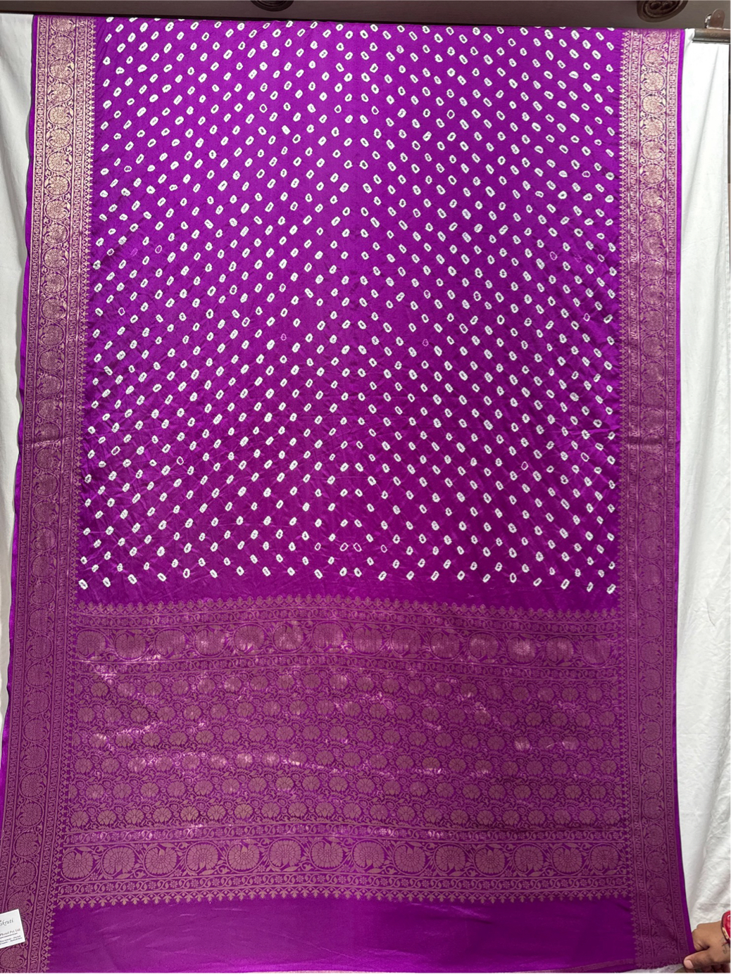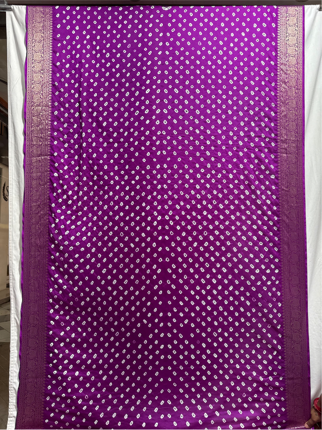 - Color Story: Striking All Over Magenta complemented with Hand Made Bandhani.