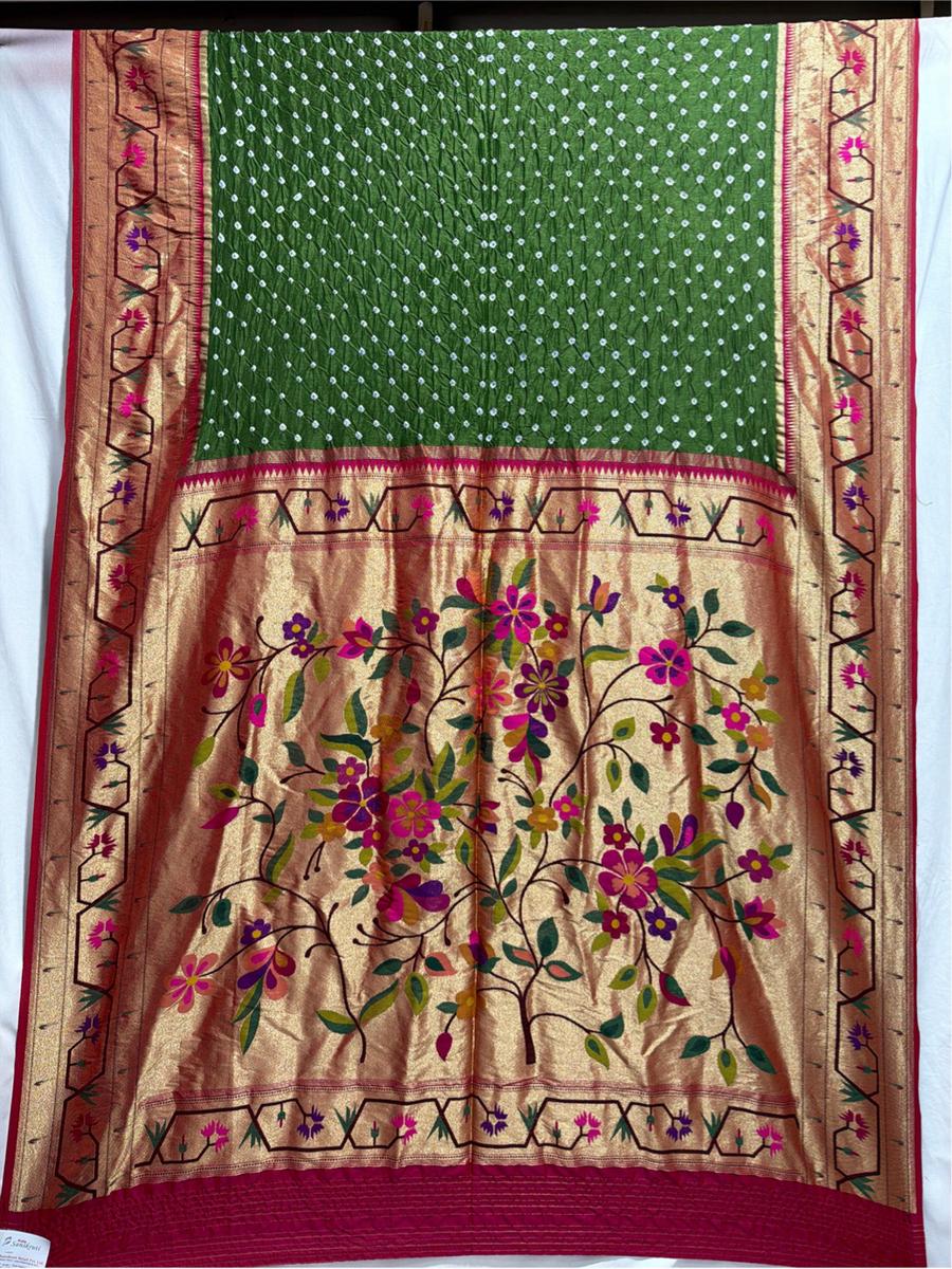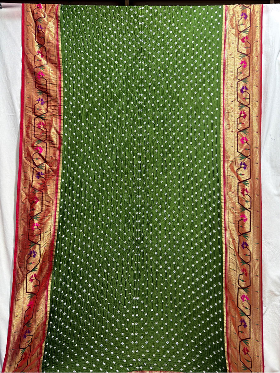Kala Sanskruti Green & Pink Color Art Silk Bandhani Saree 6.5M with Blouse Piece Elegant Traditional Wear Bridal Unique Saree for Women