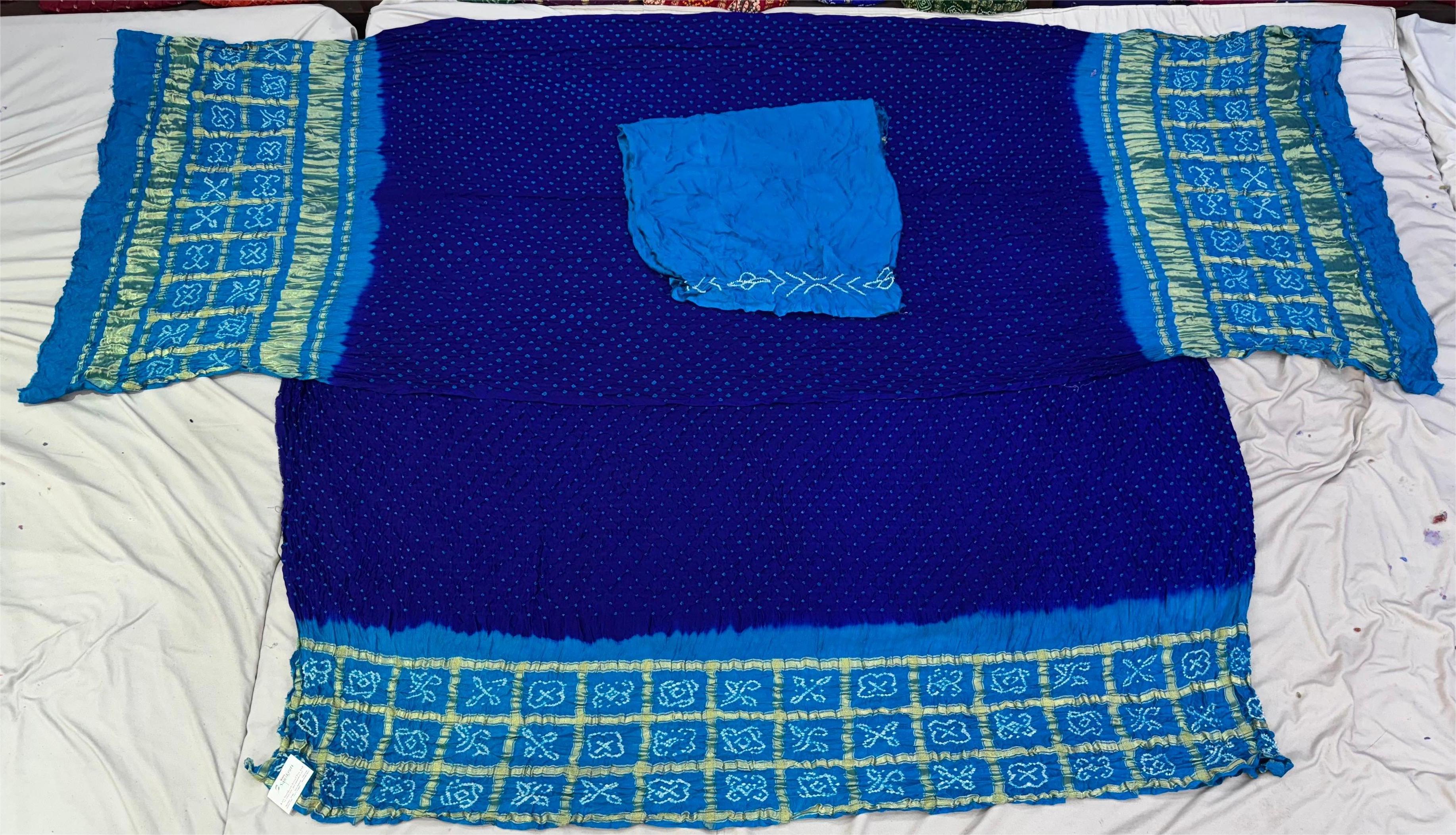 - Color Story: Striking Sky Blue & Blue complemented with Bandhej Craft & Creation.
