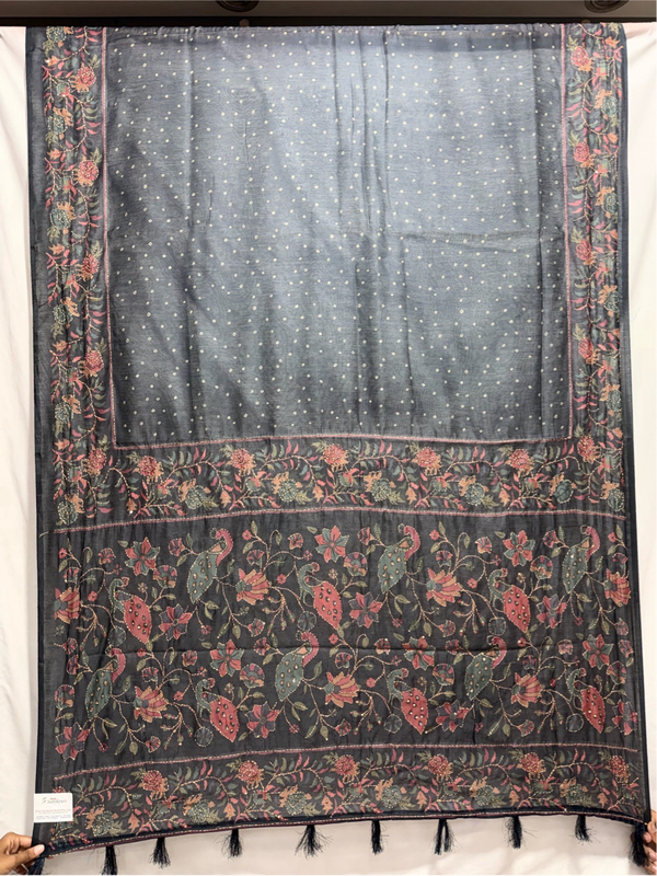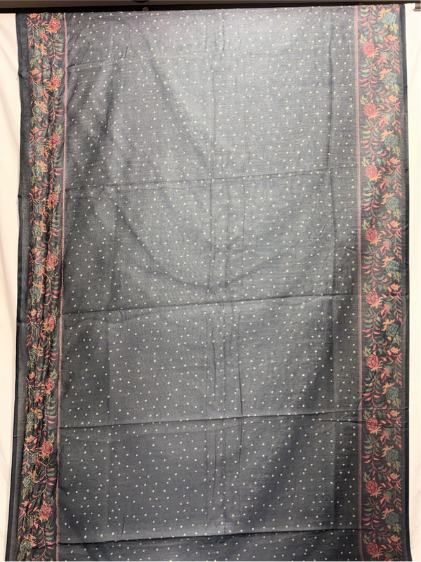 - Design: All Over Dark Gray Hand Made Bandhani motifs across the body.