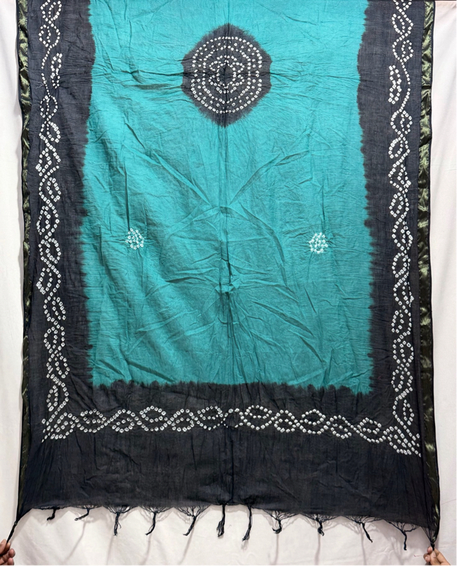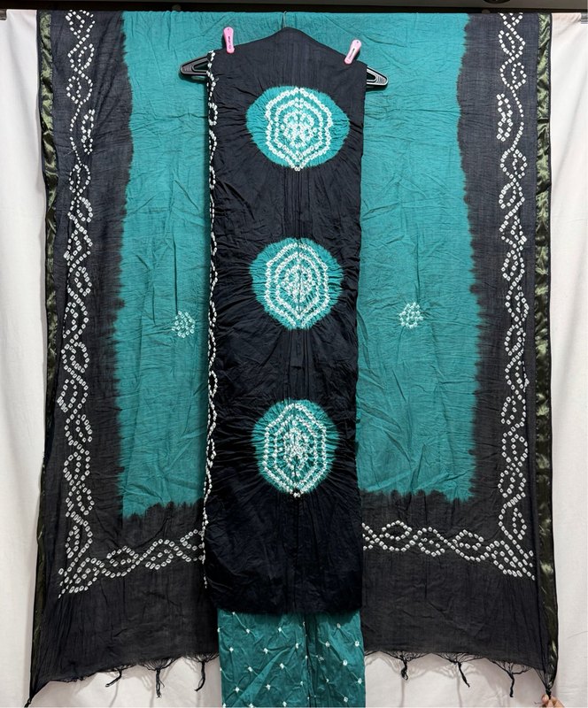 Kala Sanskruti Rama & Black Color Heavy Cotton Satin Bandhani Dress 2.5 M (Each Piece) Elegant Traditional Wear Dress Material for Women
