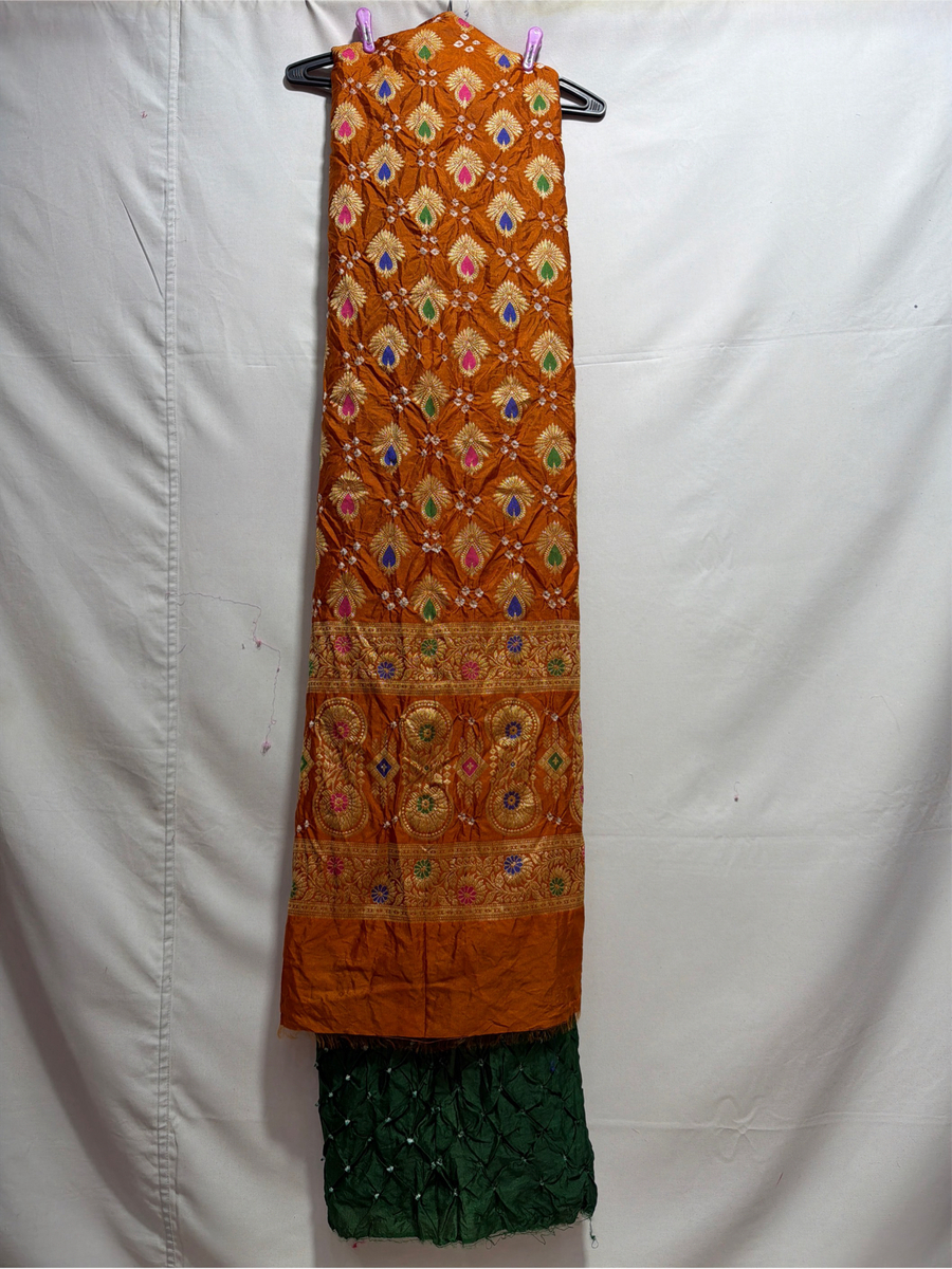 Kala Sanskruti Rust & Green Color Dupion Silk Bandhani Dress 2.5 M (Each Piece) Elegant Traditional Wear Dress for Women