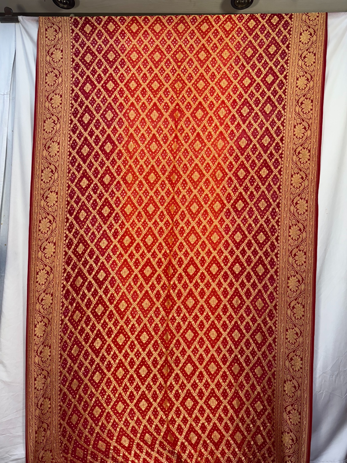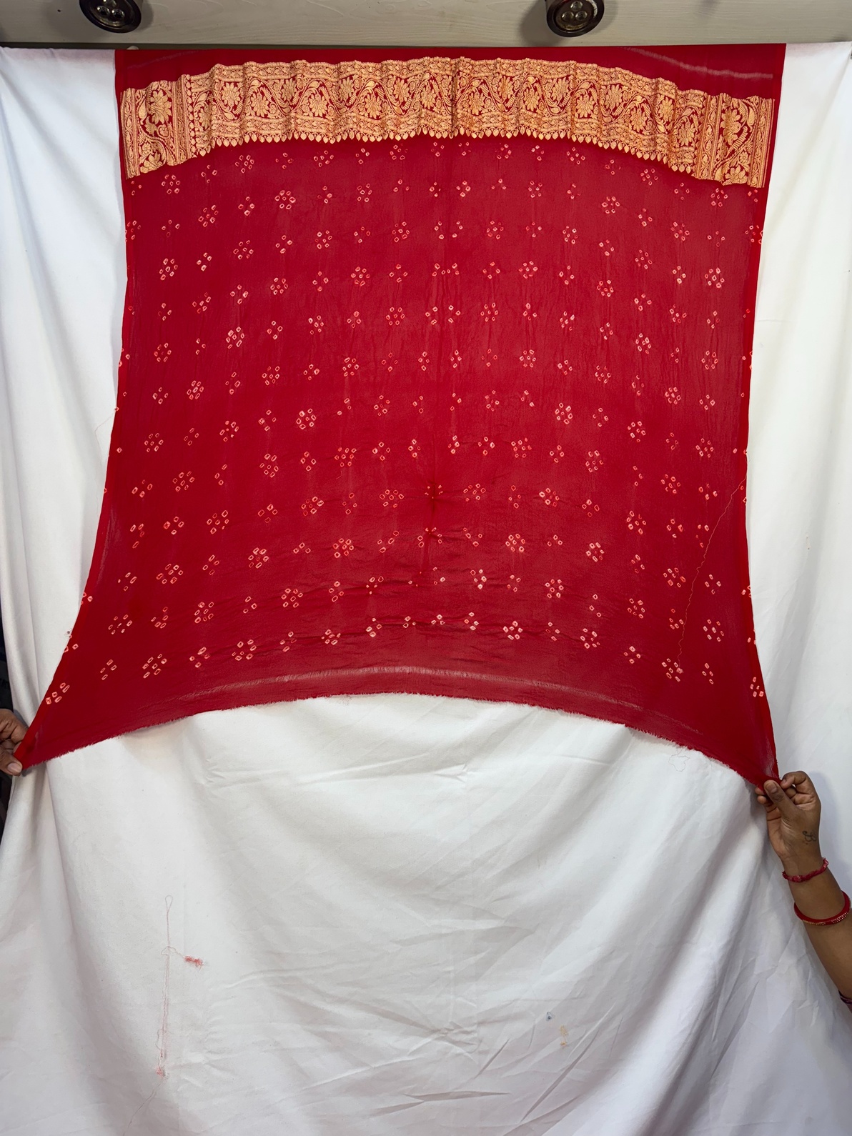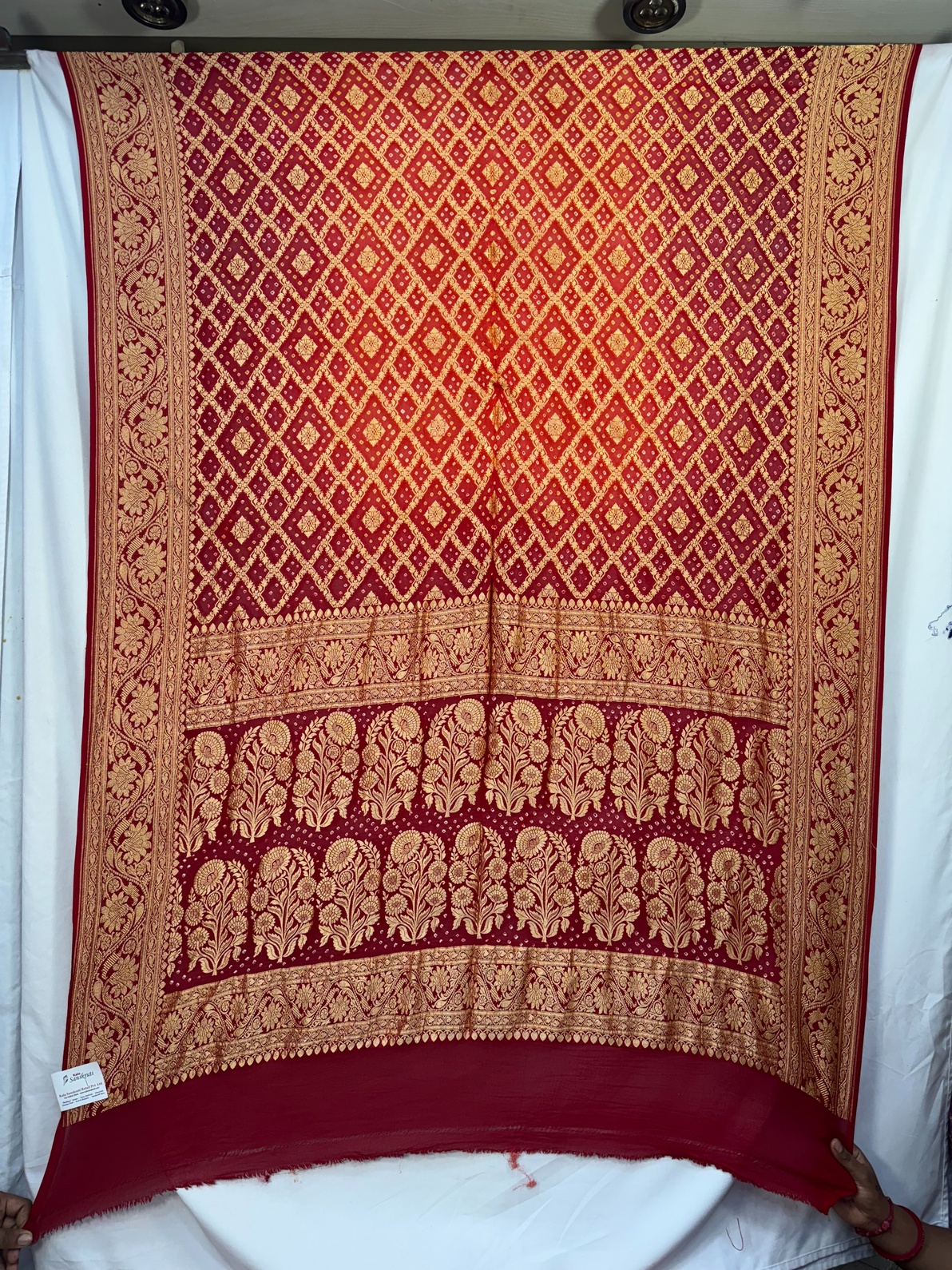 - Proudly handcrafted by skilled artisans, merging Banarasi weaving heritage with the art of Bandhani