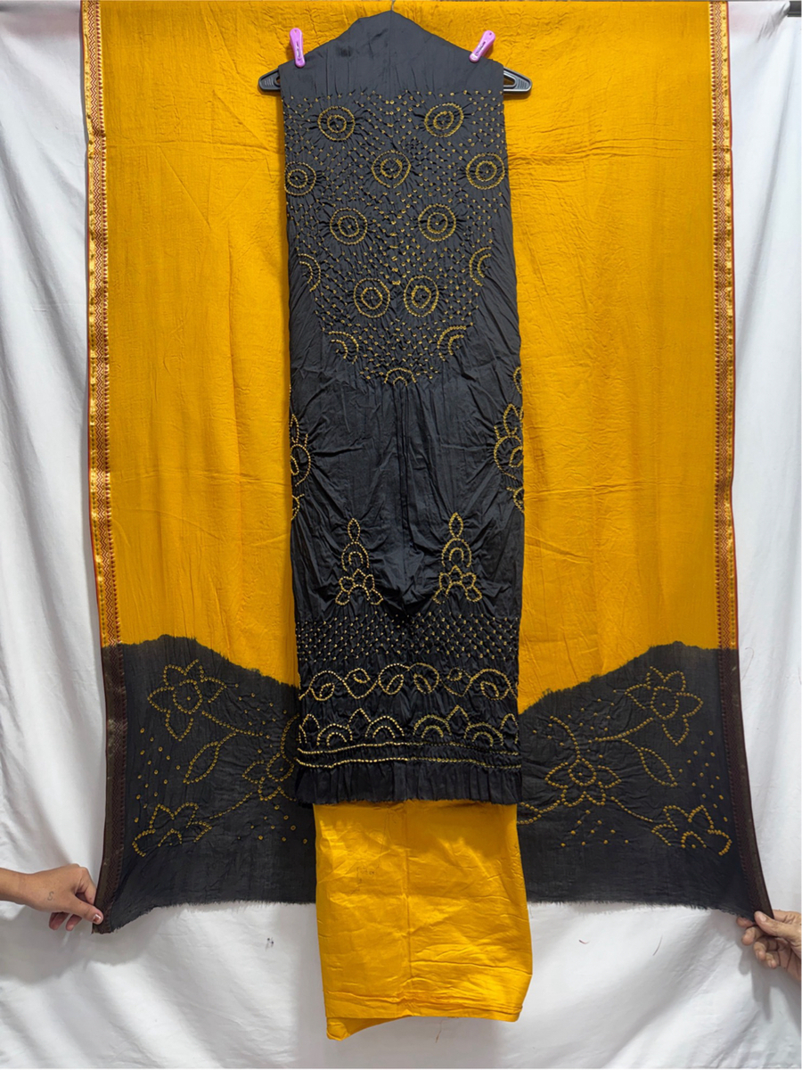 Kala Sanskruti Grey Chiku Colour Heavy Cotton Satin Bandhani Dress 2.5 M (Each Piece) Elegant Traditional Wear Dress Material for Women