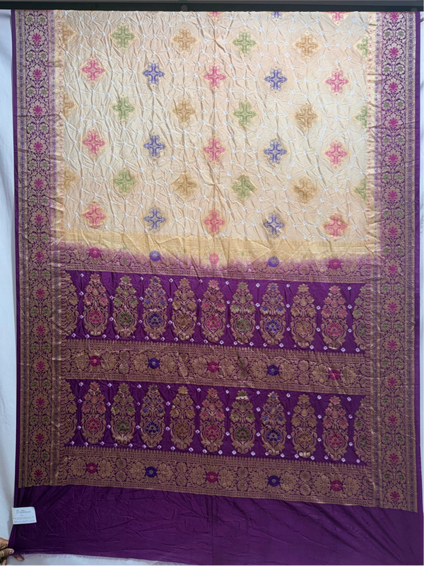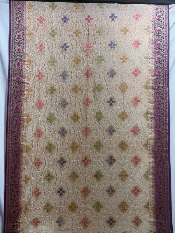 Kala Sanskruti Cream & Magenta Color Dupion Silk Bandhani Saree 6.5M with Blouse Piece Elegant Traditional Wear Bridal Saree for Women