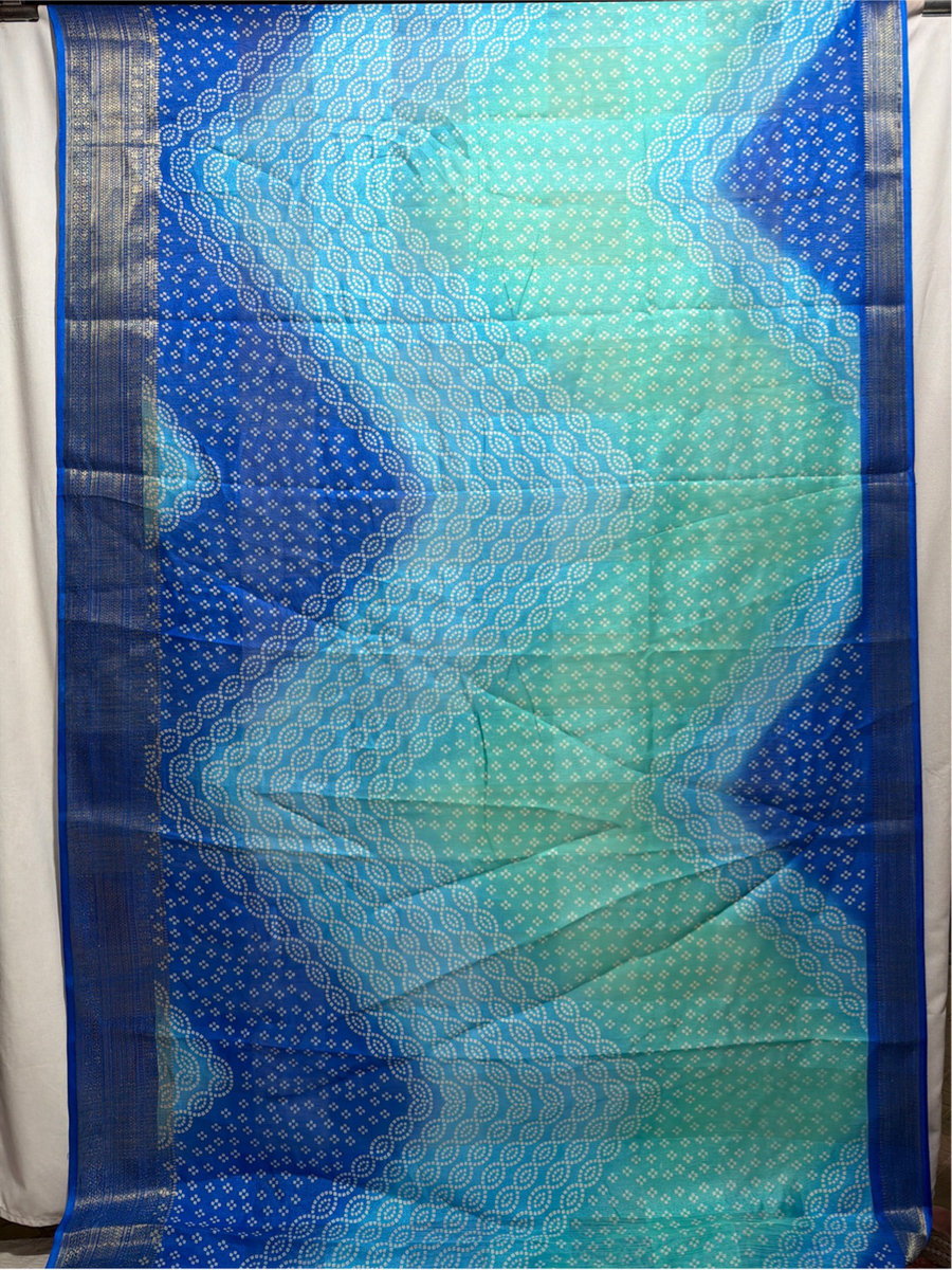 Kala Sanskruti Rama , Skay Blue & Blue Color Art Silk Printed Saree 6.5M with Blouse Piece Elegant Traditional Wear Saree for Women