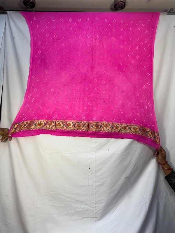 - Material: Crafted from premium Banarasi Georgette with traditional Bandhani work, combining elegance, comfort, and durability.