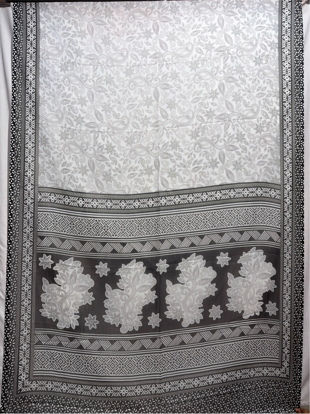 Kala Sanskruti Black & White Color Art Silk Printed Saree 6.5M with Blouse Piece Elegant Traditional Wear Saree for Women