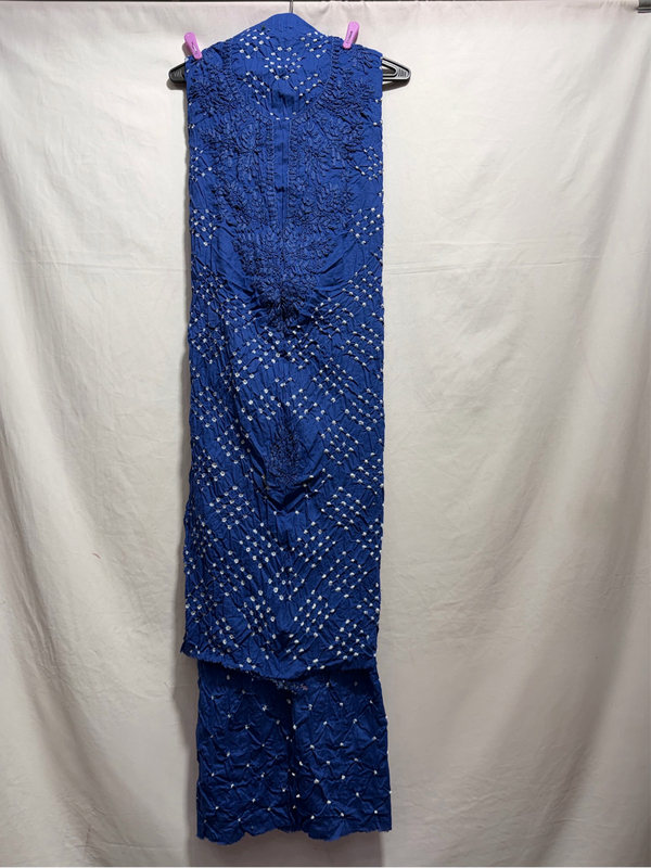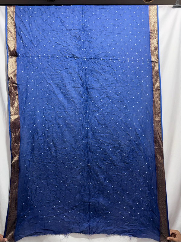 Kala Sanskruti Light Dark Blue Color Heavy Cotton Satin Bandhani Dress 2.5 M (Each Piece) Elegant Traditional Wear Dress Material for Women