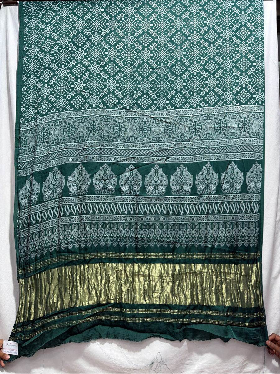 Kala Sanskruti All Over Sea Green Color Art Silk Ajarakh Print Saree 6.5M with Blouse Piece Elegant Traditional Wear Bridal Unique Printed Saree for Women