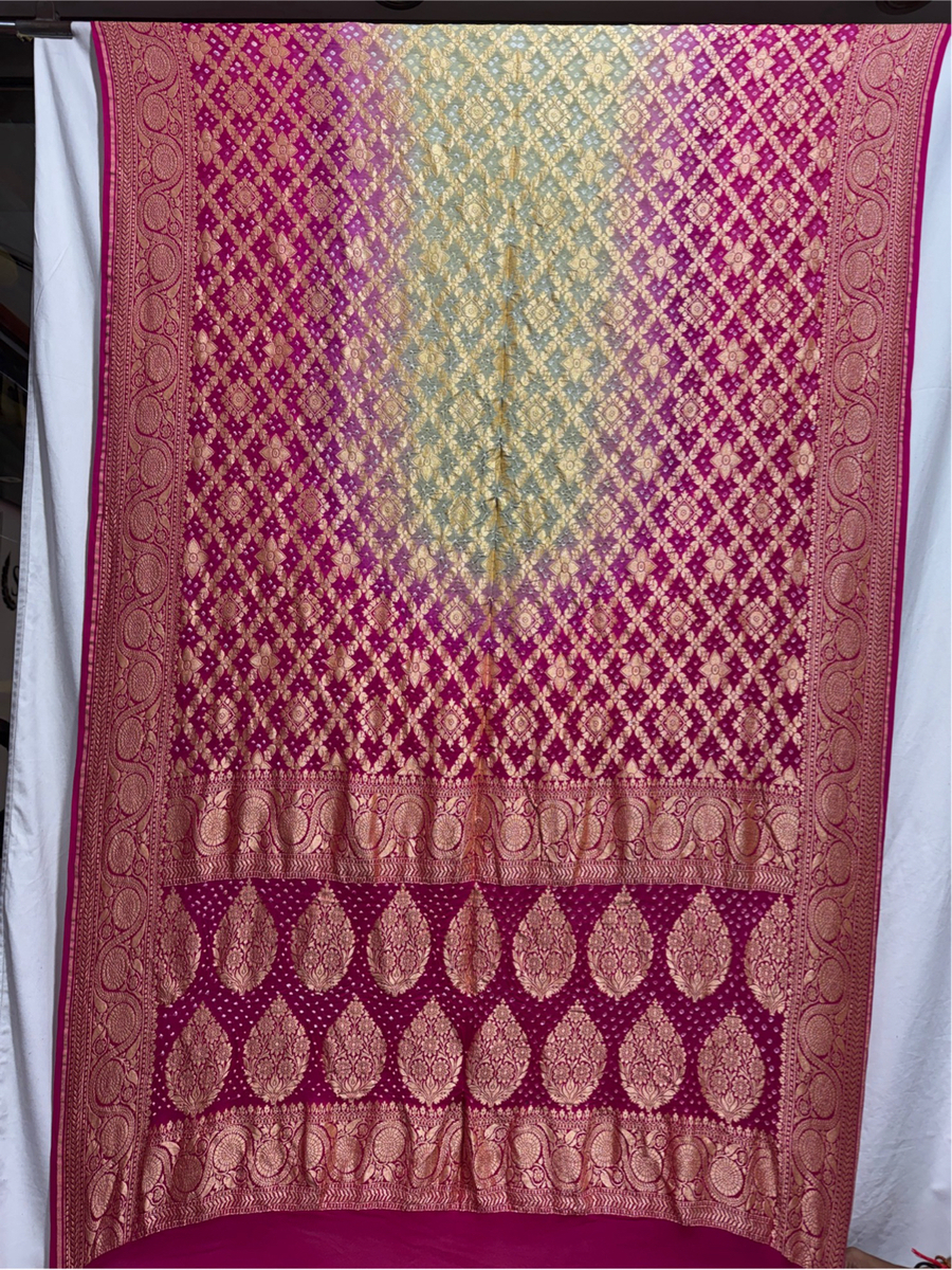 - Made in India: Proudly handcrafted in India by expert artisans, merging Banarasi weaving heritage with Bandhani craftsmanship.