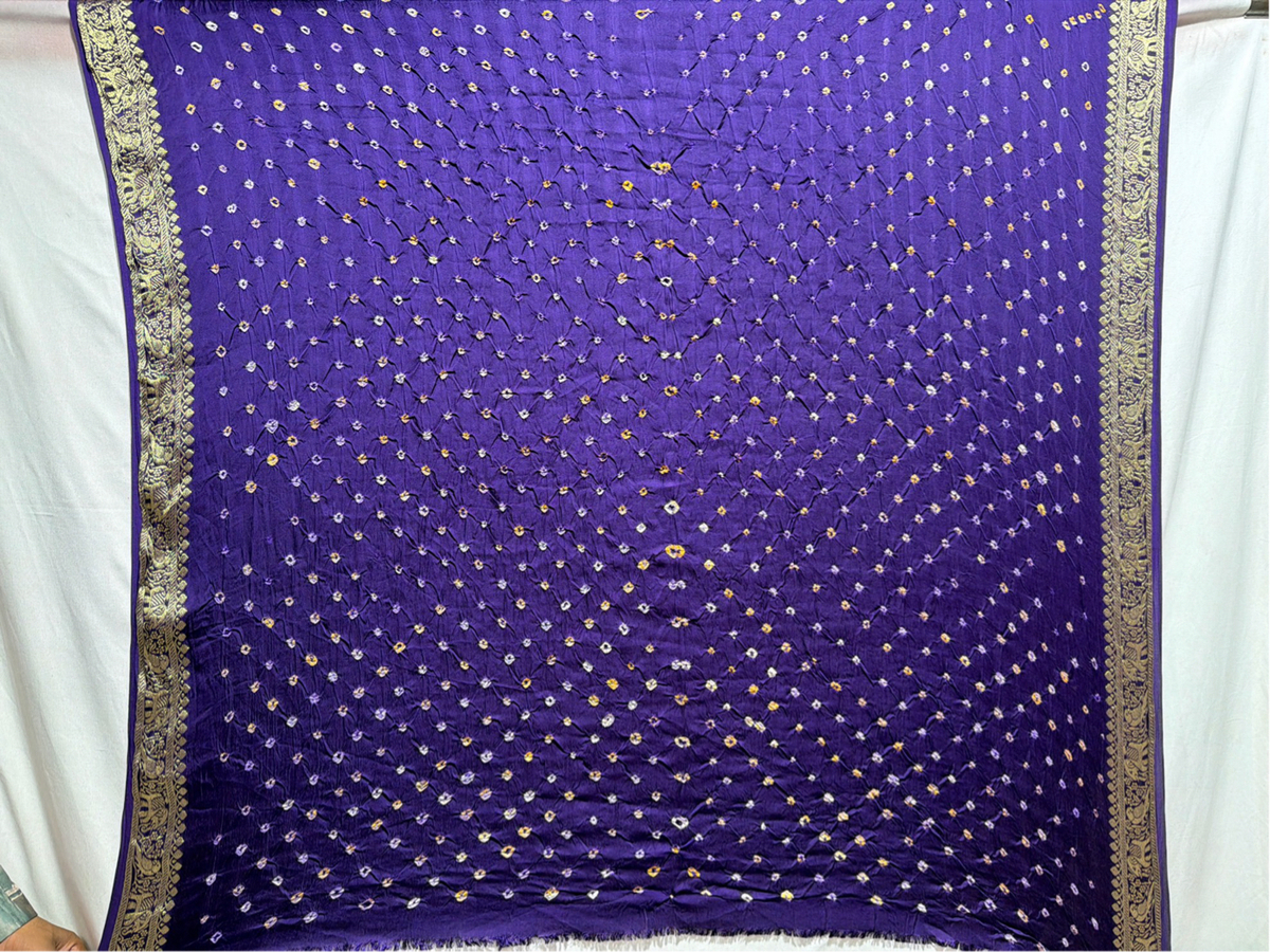 - Design: All Over Purple — Hand Made Bandhani motifs across the body.