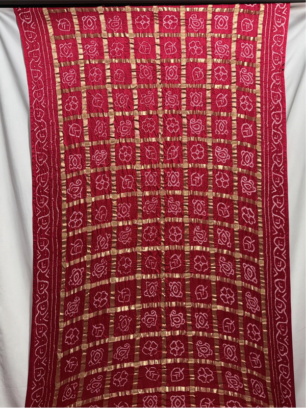 Kala Sanskruti All Over Red Color Pure Gaji Silk Heavy Gharchola Bandhani Saree 6.5M with Blouse Piece Elegant Traditional Wear Gharchola Saree for Women