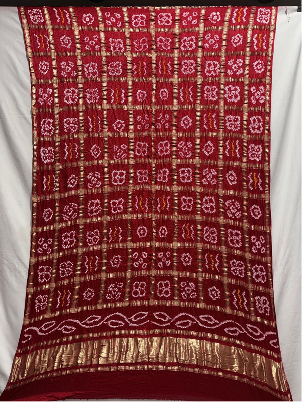Material: Premium Pure Gaji Silk with authentic Bandhani craftsmanship. Color & Design: All Over Red traditional Bandhani pattern. Size & Length: 2.5m – elegant traditional wear gaji duptta for women. Occasion: Suitable for festive, traditional, and daily ethnic wear. Features: - Soft feel - Elegant drape - Durable quality - Easy maintenance Made in India: Handcrafted by skilled artisans.