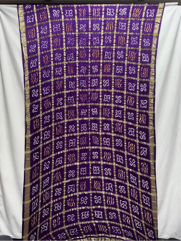 - Color Story: Striking All Over Magenta complemented with Hand Made Bandhani Gharchola.
