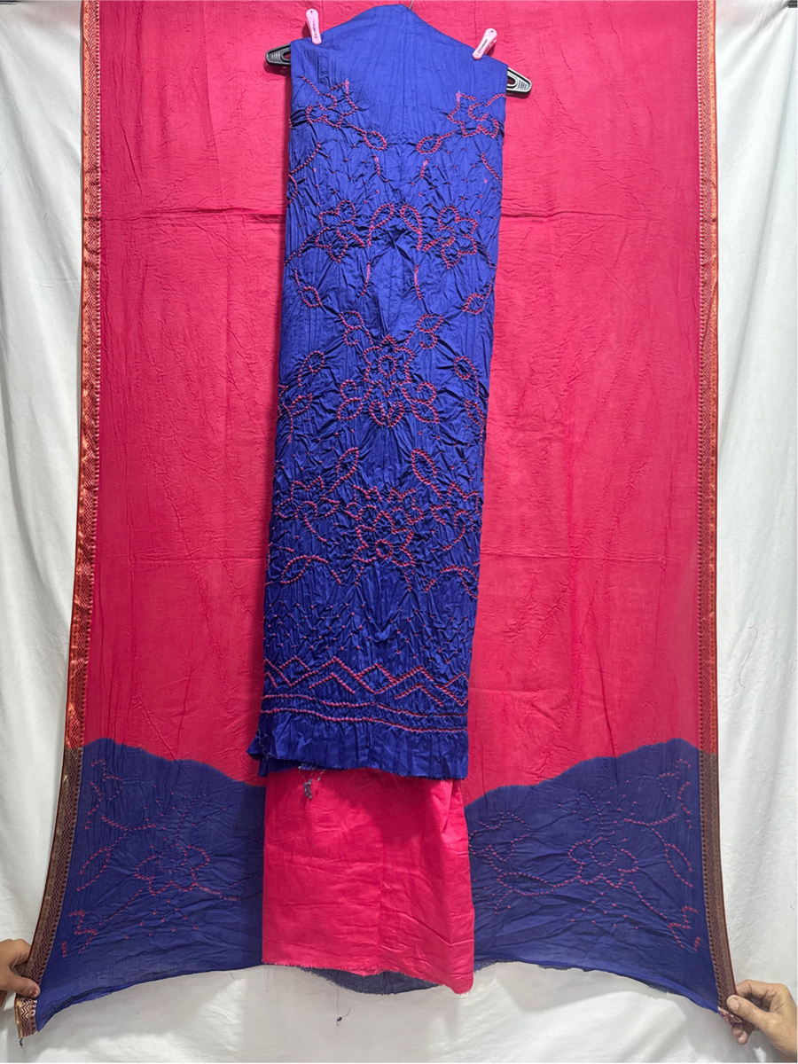 Kala Sanskruti Maroon Parrot Green Green Colour Heavy Cotton Satin Bandhani Dress 2.5 M (Each Piece) Elegant Traditional Wear Dress Material for Women