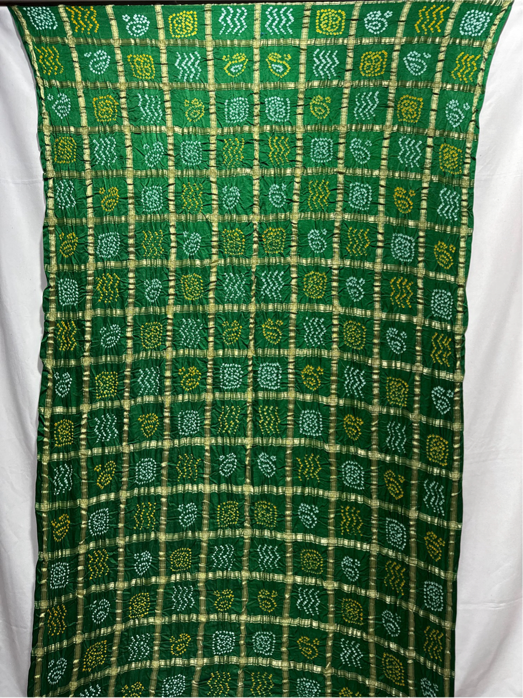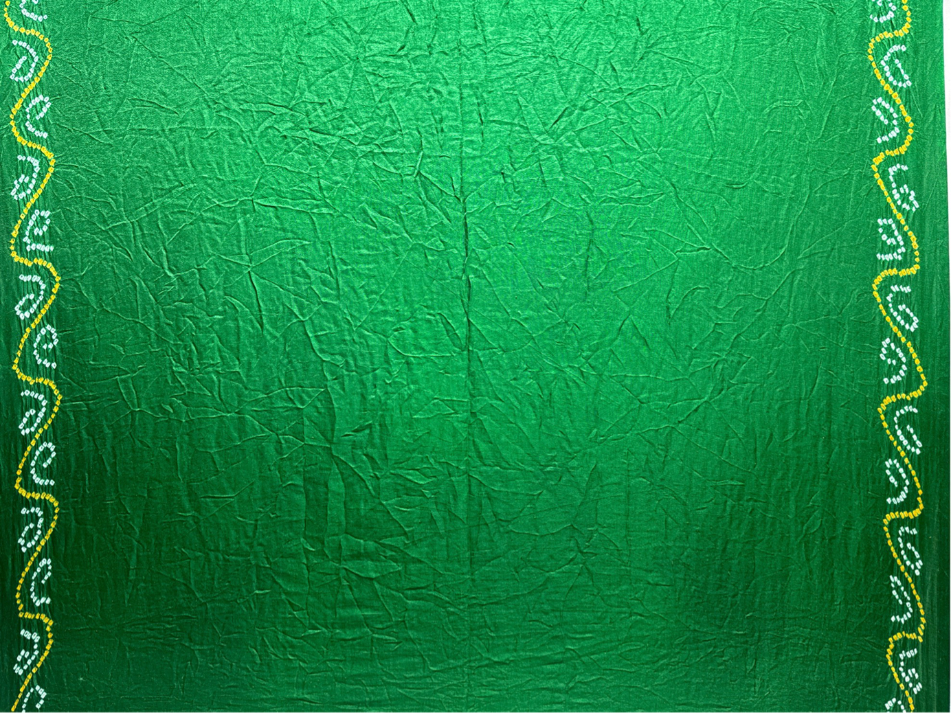 - Design & Shade: All Over Green base enhanced with Hand Made Bandhani, a true example of cultural craftsmanship.
