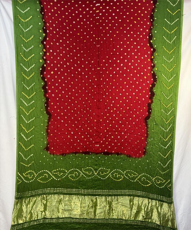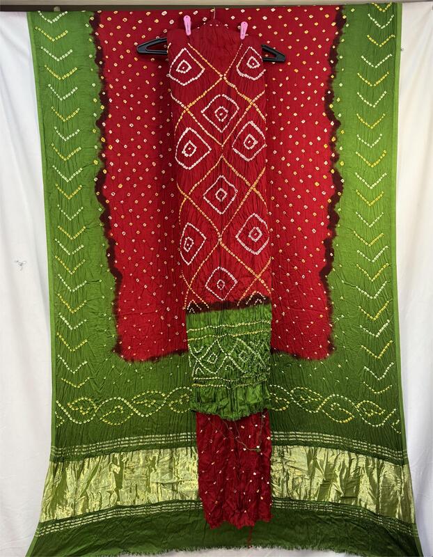 Kala Sanskruti Red & Mehndi Color Art Silk Bandhani Dress – 2.5M (Each Piece)– Elegant Traditional Wear Bridal Dress for Women