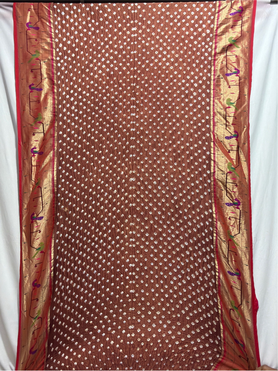 Kala Sanskruti Chiku & Pink Color Art Silk Bandhani Saree 6.5M with Blouse Piece Elegant Traditional Wear Bridal Unique Saree for Women