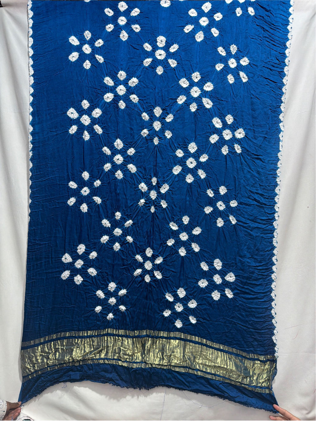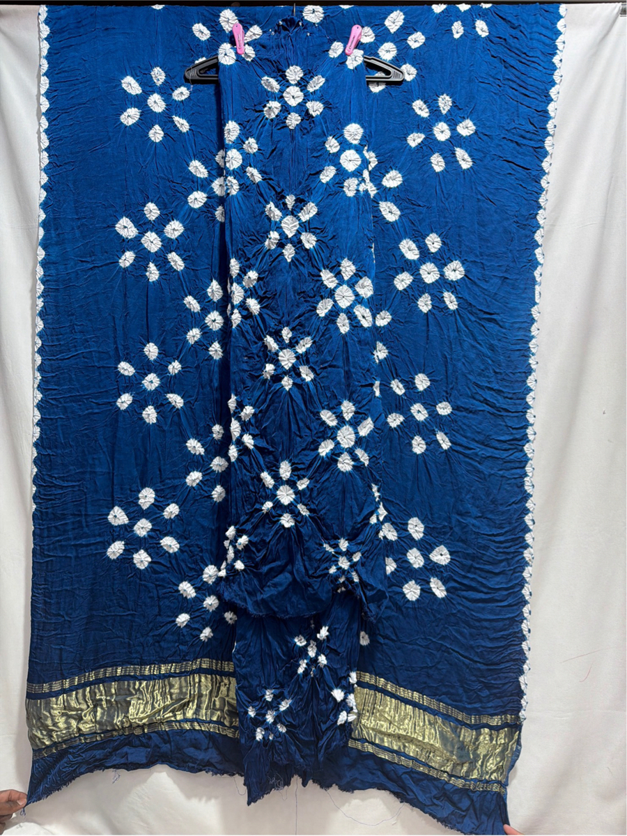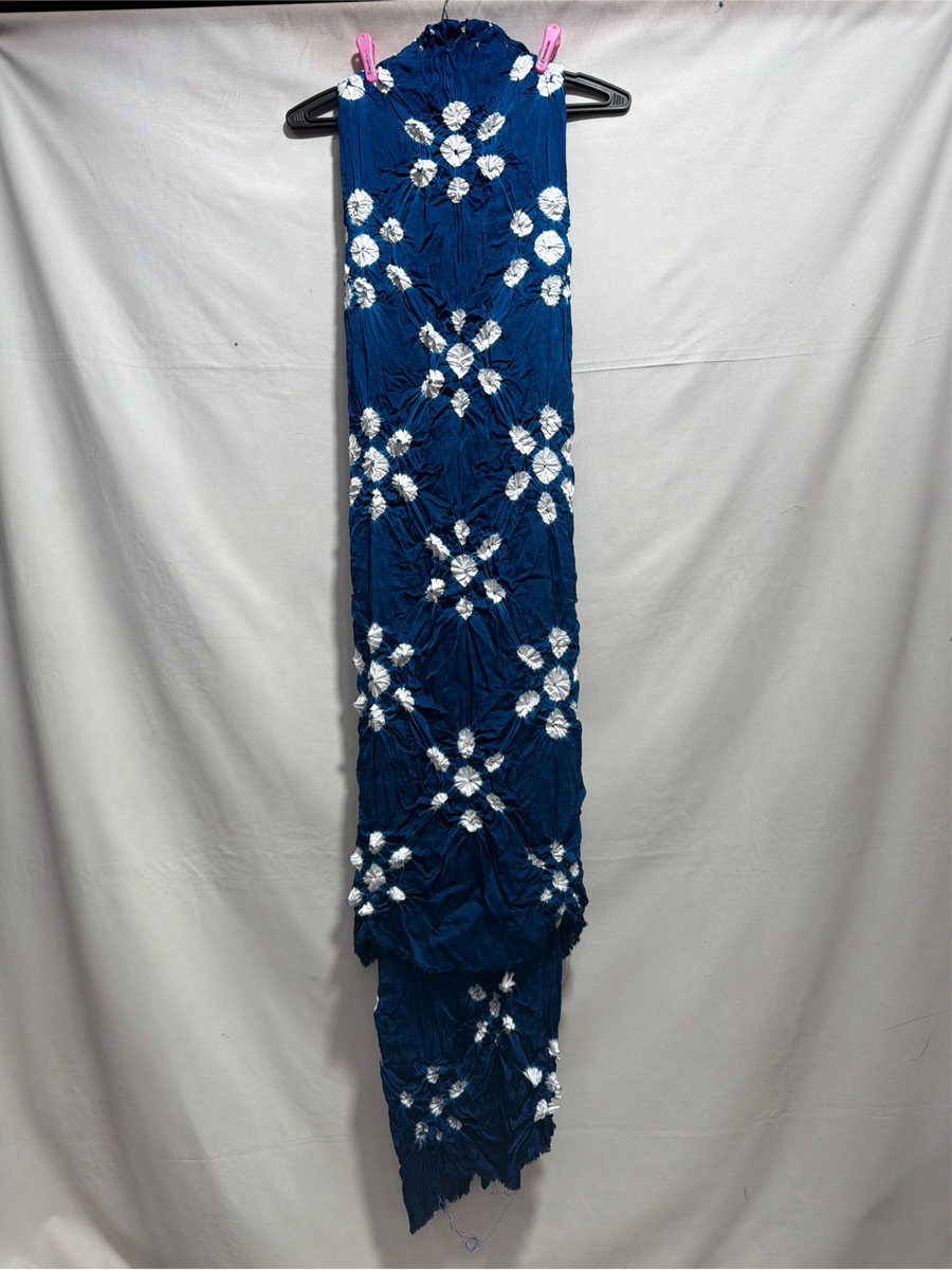 Kala Sanskruti Indigo & White Color Art Silk Bandhani Dress 2.5 M Each Piece Elegant Traditional Wear Art Silk Dress for Women