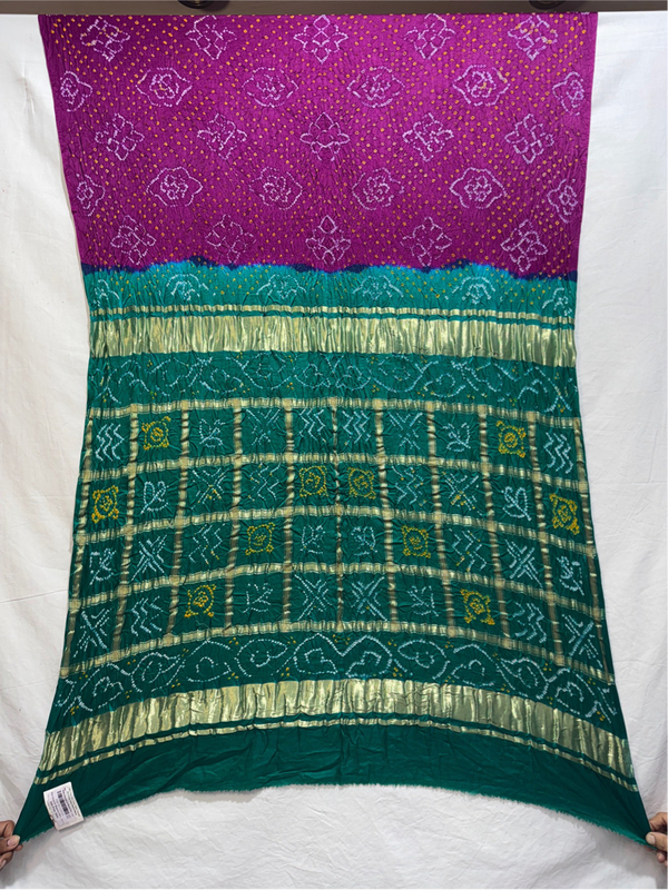Kala Sanskruti Sea Green & Magenta Color Gaji Silk Bandhani Saree - Saree With Blouse - 6.5M - Traditional Festive, Wedding & Party Wear