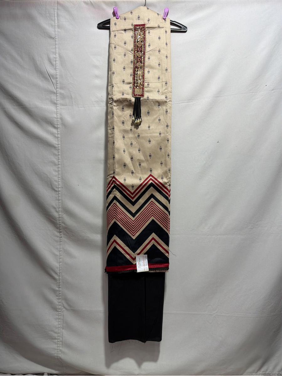 Kala Sanskruti Chiku & Black Color Heavy Cotton Satin Bandhani Dress 2.5 M (Each Piece) Elegant Traditional Wear Dress Material for Women