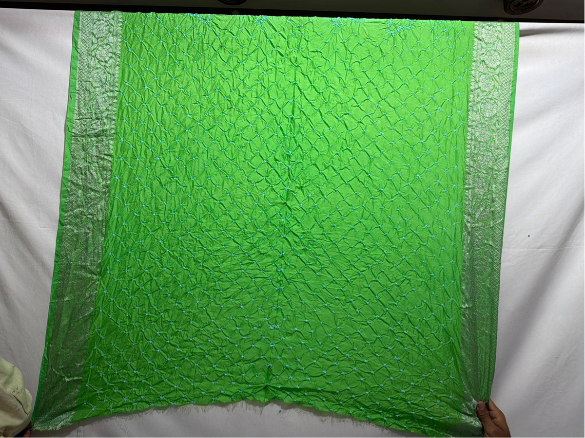 Kala Sanskruti Light Dark Parrot Color Dupion Silk Bandhani Saree 6.5M with Blouse Piece Elegant Traditional Wear Bridal Saree for Women