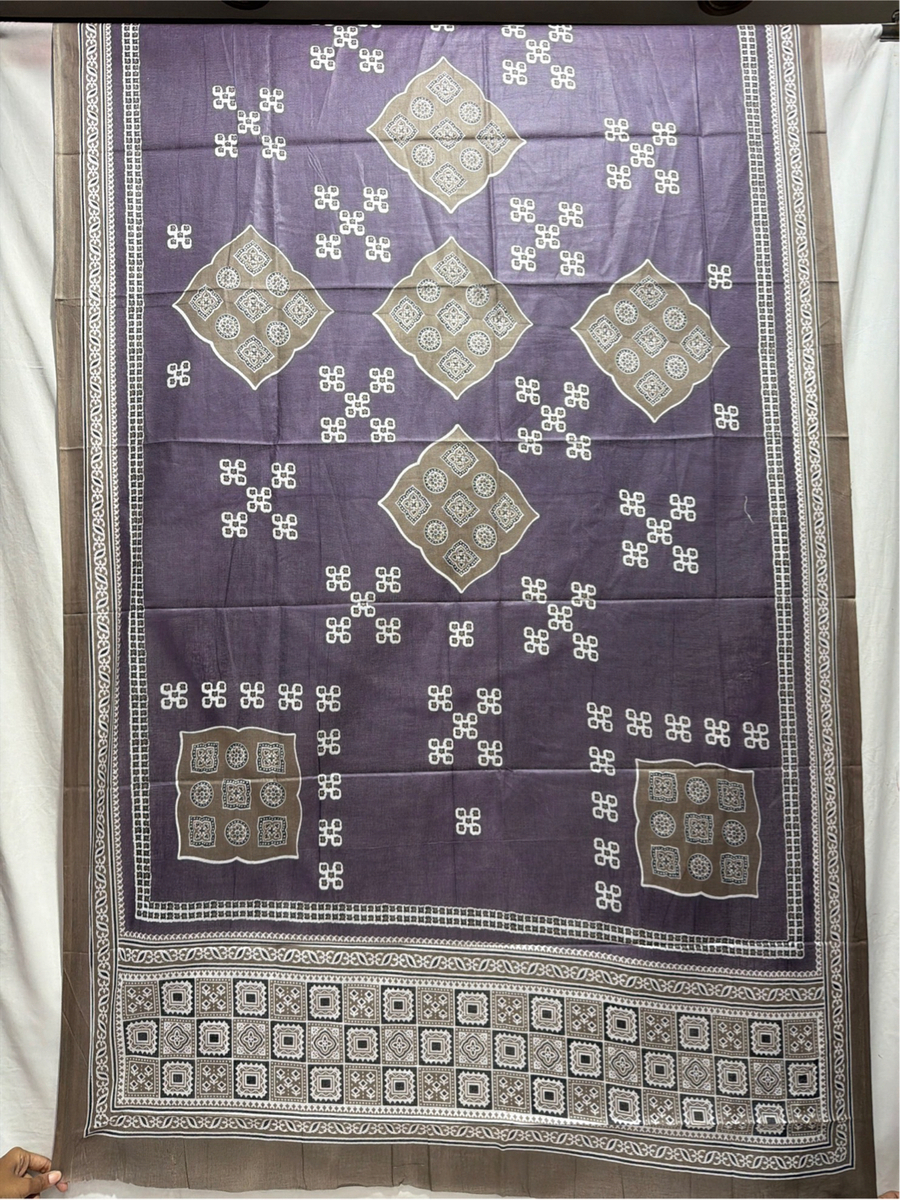 Kala Sanskruti All over Lavender Colour Heavy Cotton Satin Printed Dress 2.5 M (Each Piece) Elegant Traditional Wear Dress Material for Women