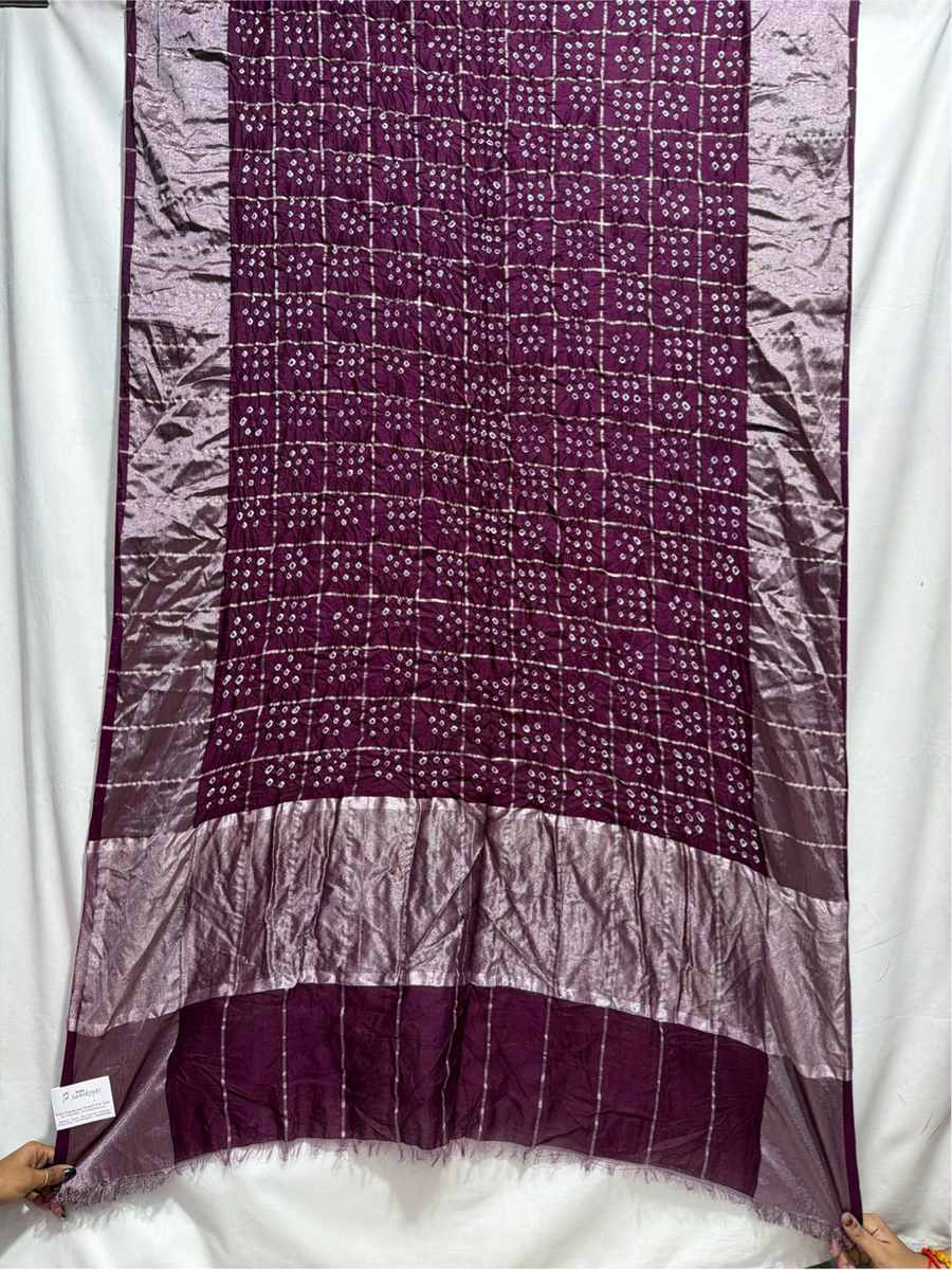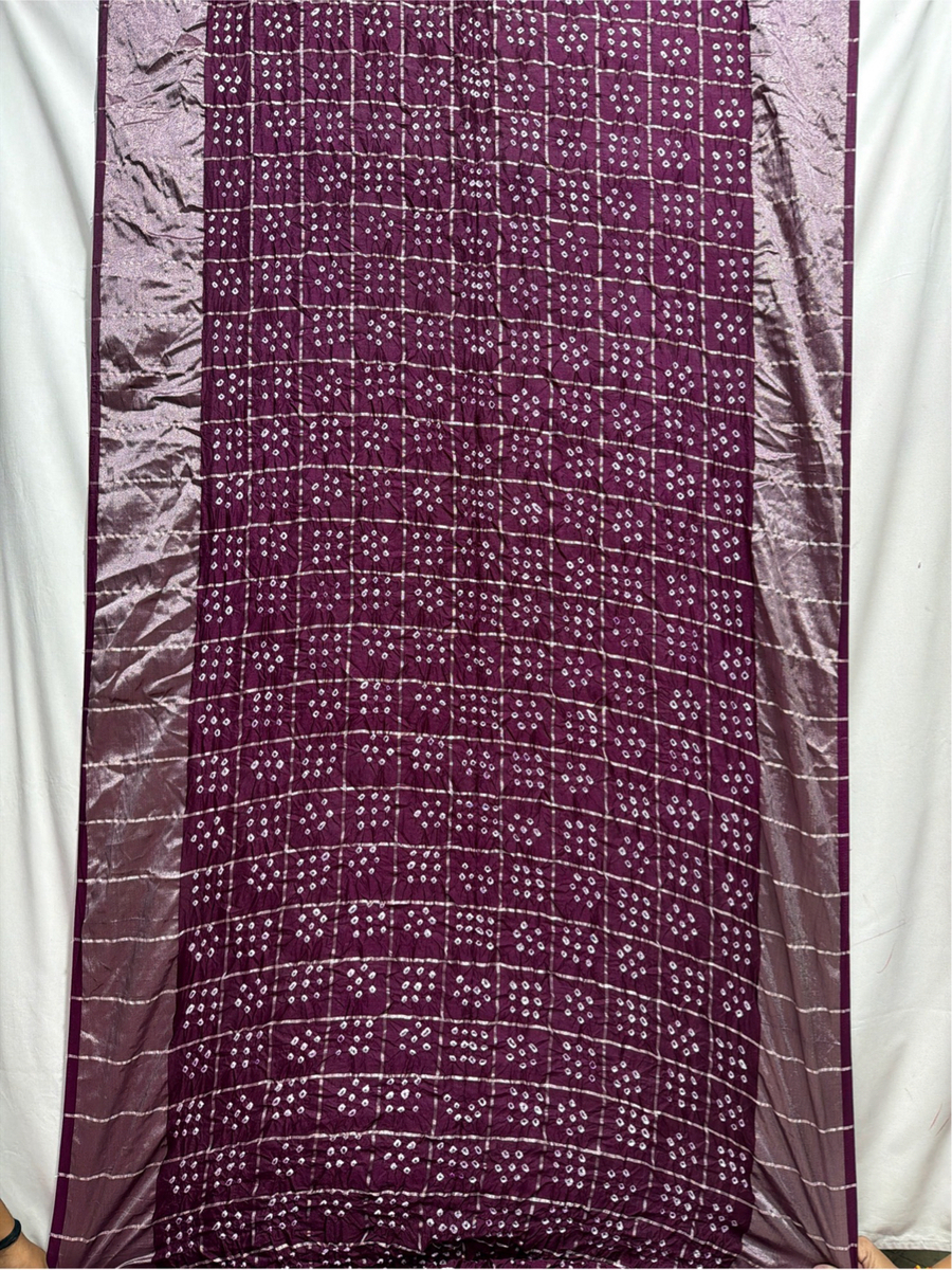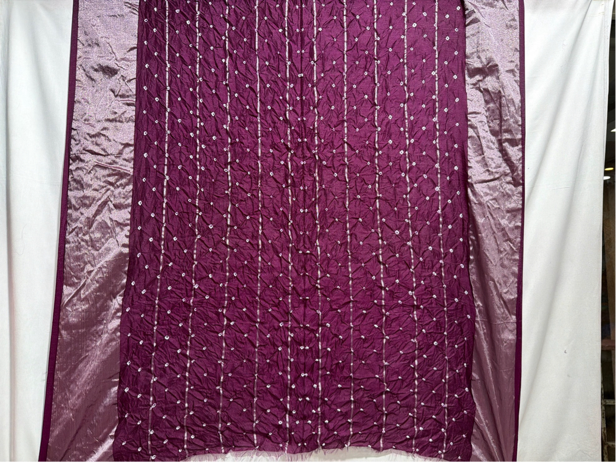 Kala Sanskruti All Over Dark Wine Color Dupion Silk Bandhani Saree 6.5M with Blouse Piece Elegant Traditional Wear Bridal Saree for Women