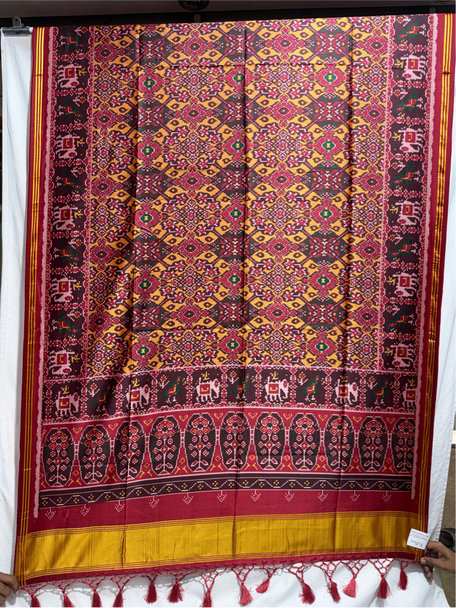 Kala Sanskruti Coffee Red Golden 3D Color Art Silk Patola Saree 6.5M with Blouse Piece Elegant Traditional Wear Bridal Unique Saree for Women