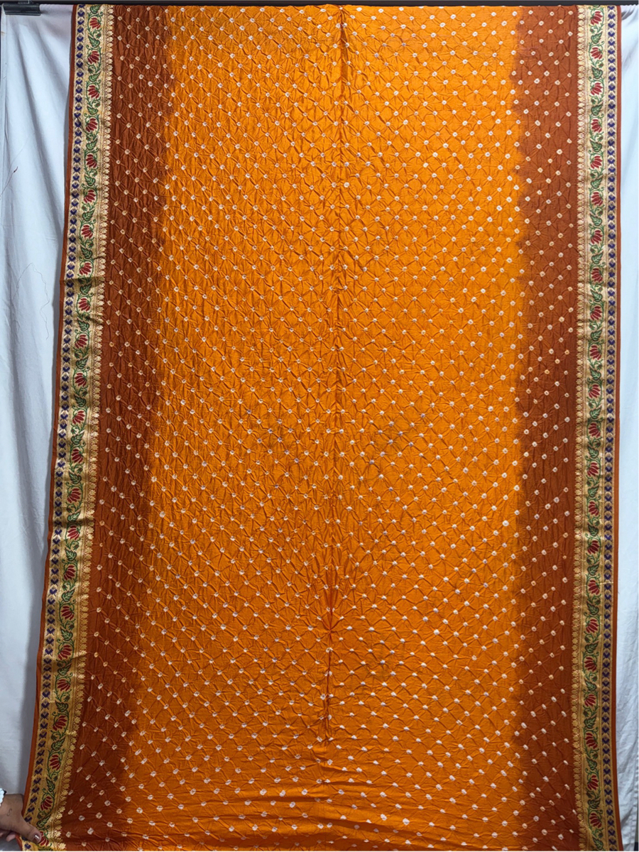 Kala Sanskruti Golden Rust Color Dupion Silk Bandhani Saree 6.5M with Blouse Piece Elegant Traditional Wear Bridal Saree for Women