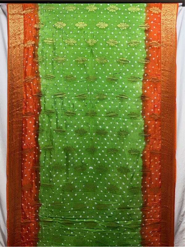 - Design: Popati & Orange — Hand Made Bandhani motifs across the body.