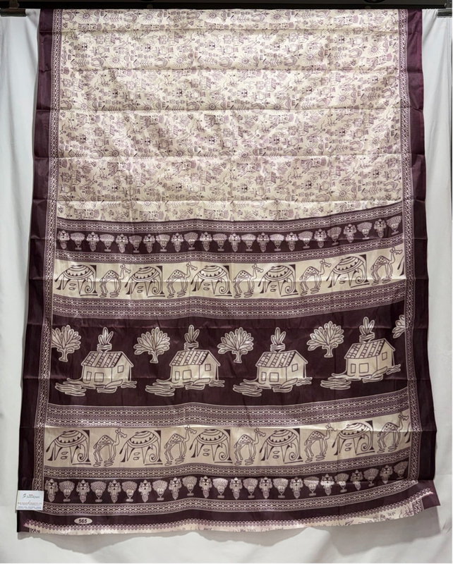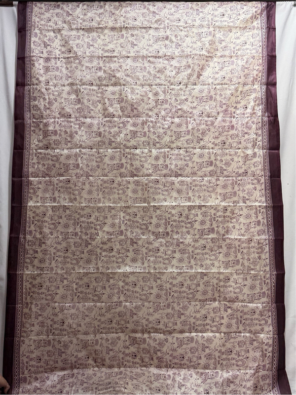 Kala Sanskruti Cream & Wine Color Art Silk Printed Saree 5M (Without Blouse) Piece Elegant Traditional Wear Bridal Unique Saree for Women