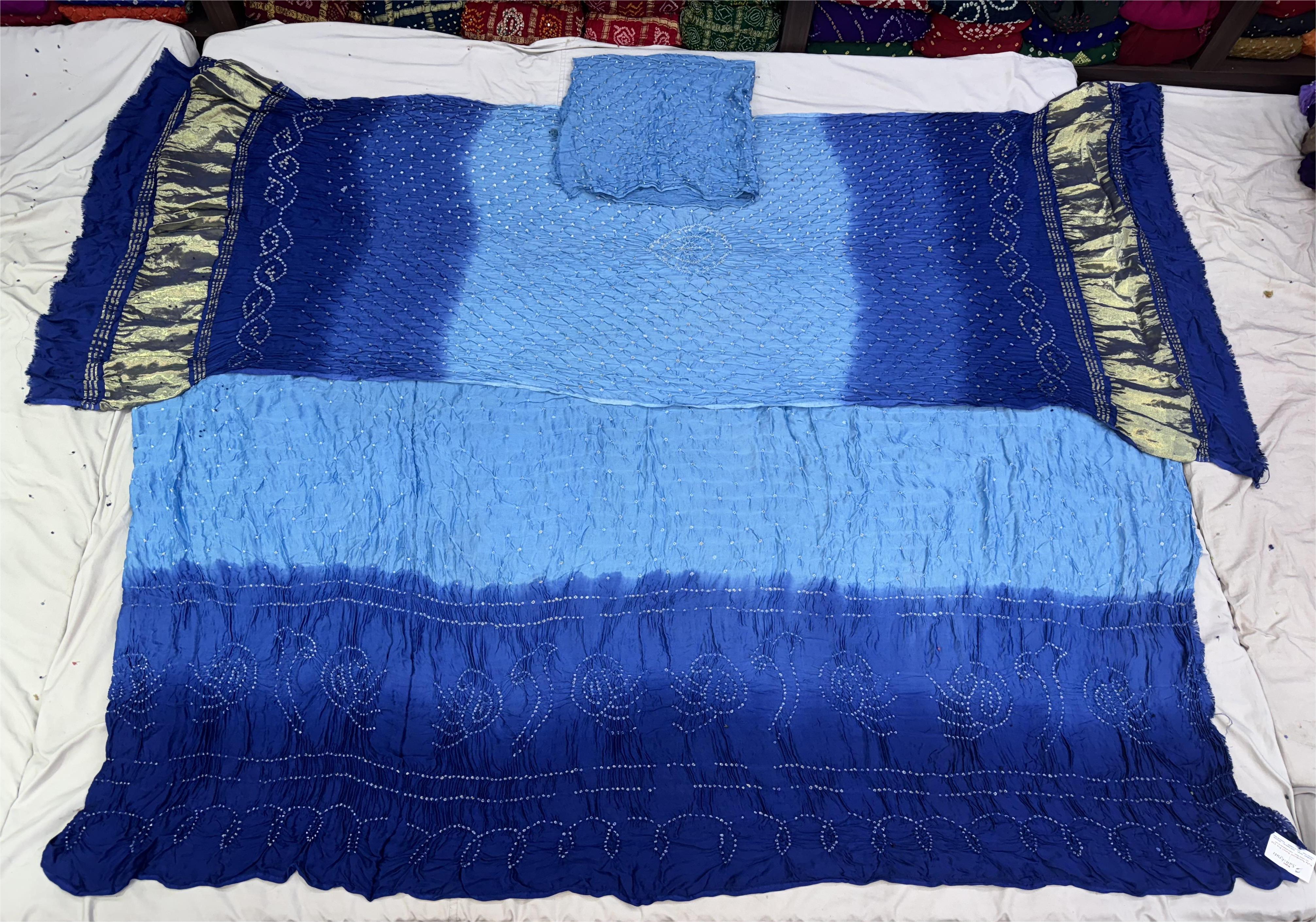 - Design: Light Dark Sky Blue — Hand Made Bandhani motifs across the body.
