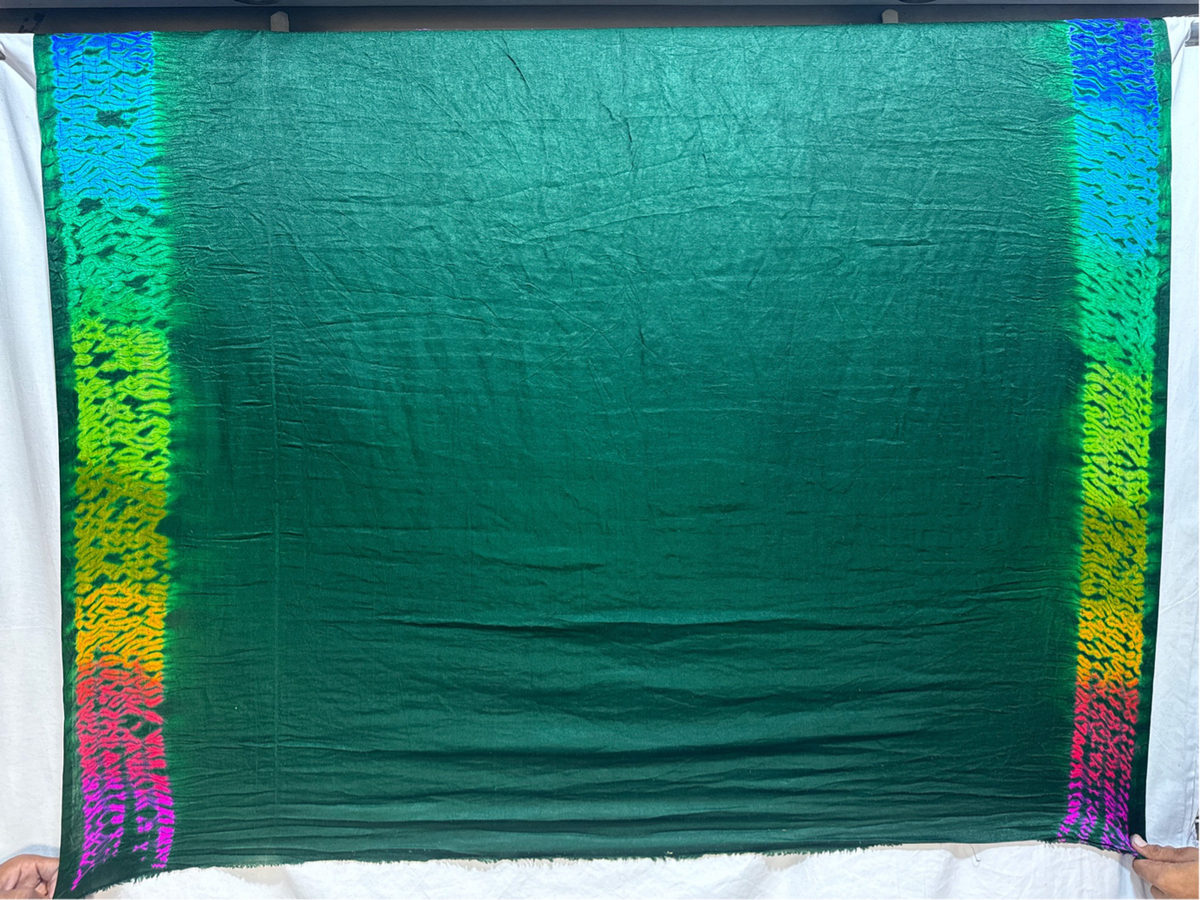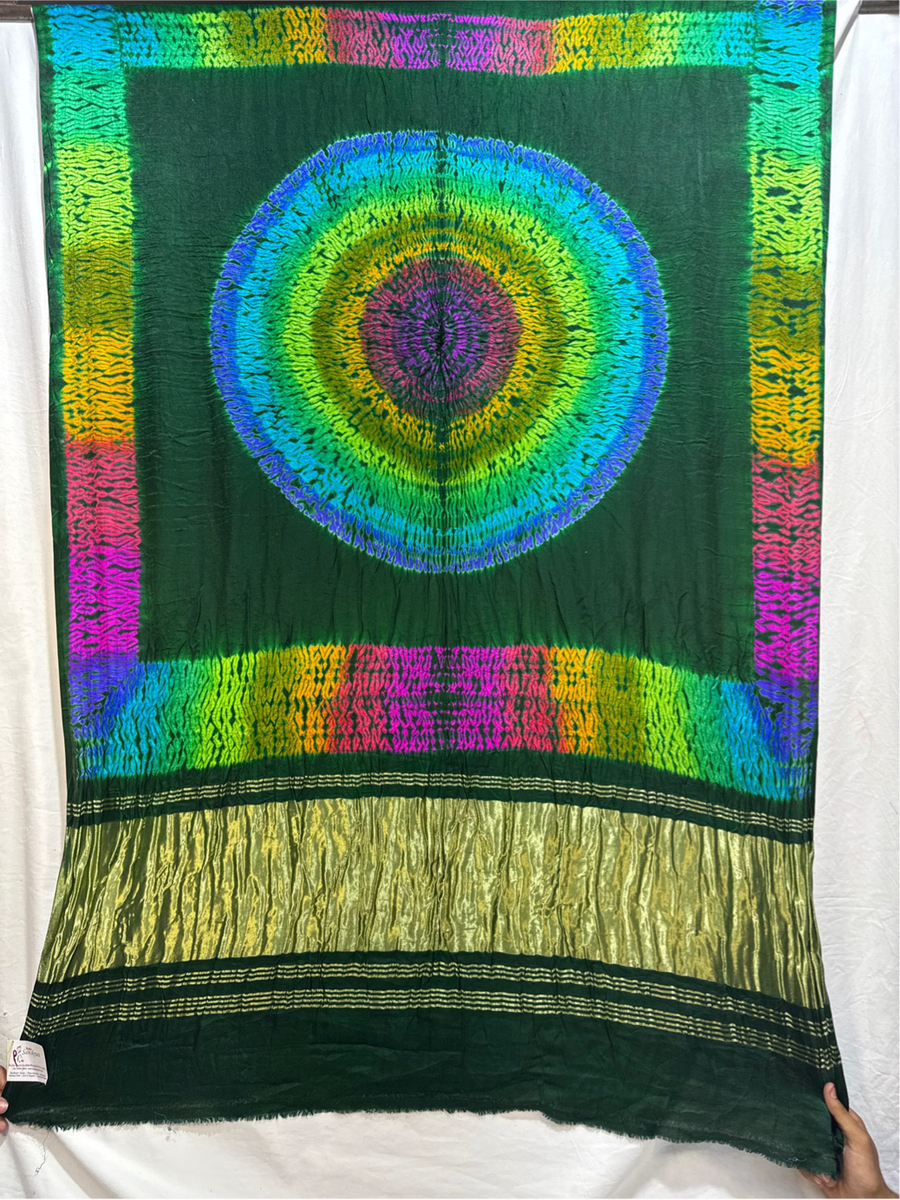 - Color & Work: A all over green sibori saree adorned with intricate Hand Made Bandhani, designed to make it stand out on festive and wedding occasions.