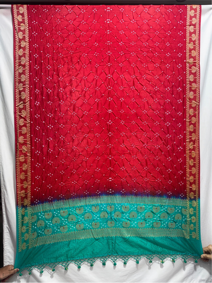 Hand Made Bandhani Saree Fabric