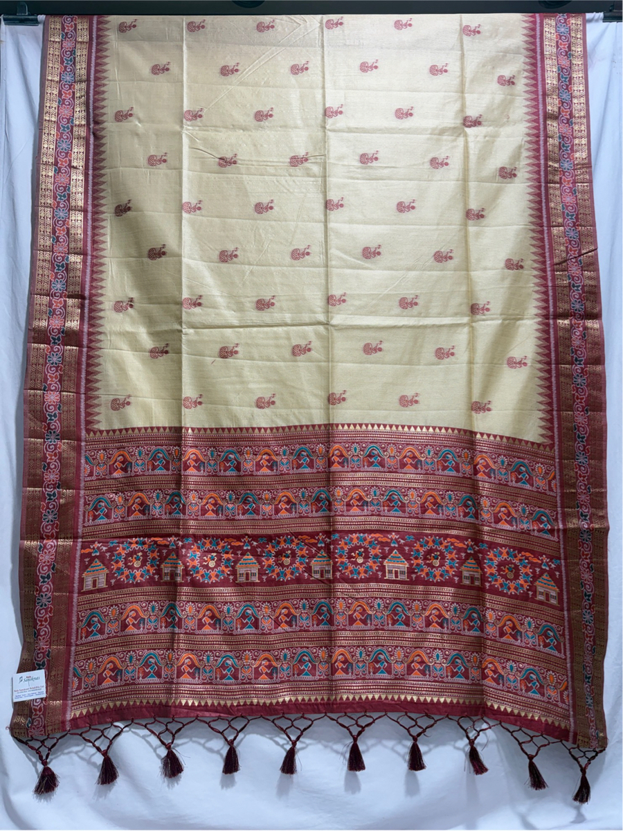 Kala Sanskruti Cream Maroon Color Art Silk Printed Saree 6.5M with Blouse Piece Elegant Traditional Wear Bridal Unique Saree for Women