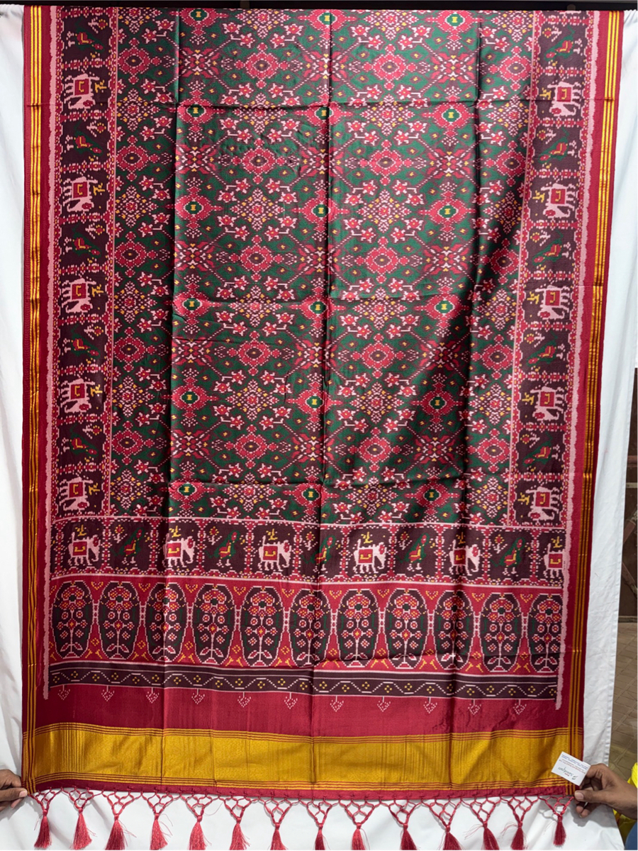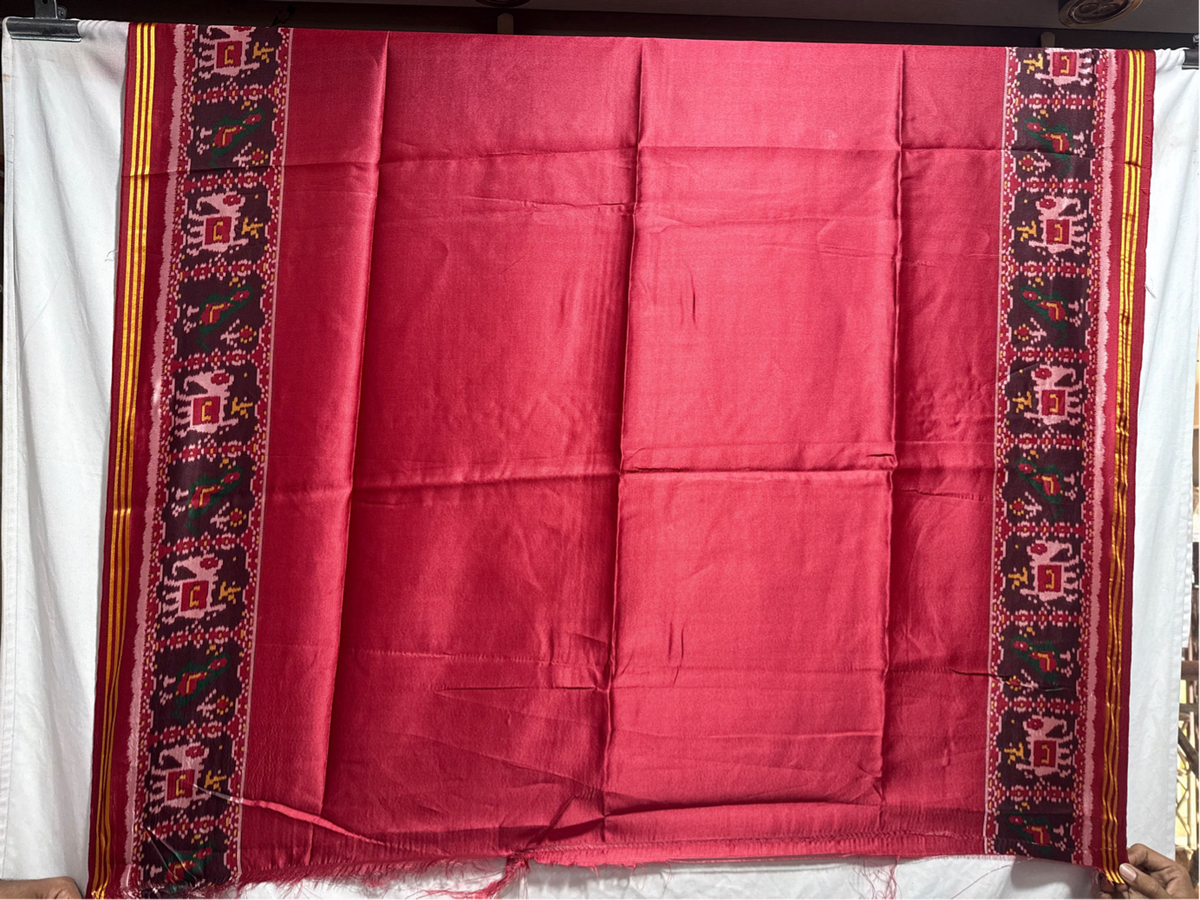 Kala Sanskruti Peach Coffee Red 3D Color Art Silk Patola Saree 6.5M with Blouse Piece Elegant Traditional Wear Bridal Unique Saree for Women