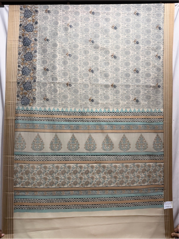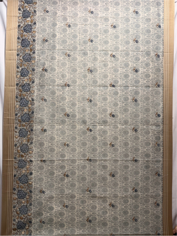 Kala Sanskruti Gray & Cream Color Cotton Printed Saree 6.5M with Blouse Piece Elegant Traditional Wear Saree for Women