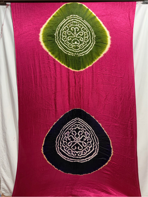 Kala Sanskruti Blue Pink Mehndi 3D Color Art Silk Bandhani Saree 6.5M with Blouse Piece Elegant Traditional Wear Bridal Unique Saree for Women