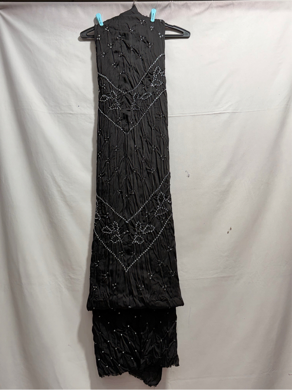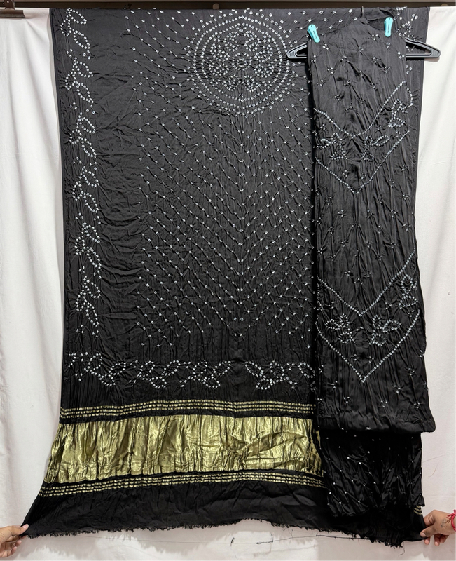 Kala Sanskruti All Over Black Color Art Silk Bandhani Dress 2.5 M Each Piece Elegant Traditional Wear Art Silk Dress for Women