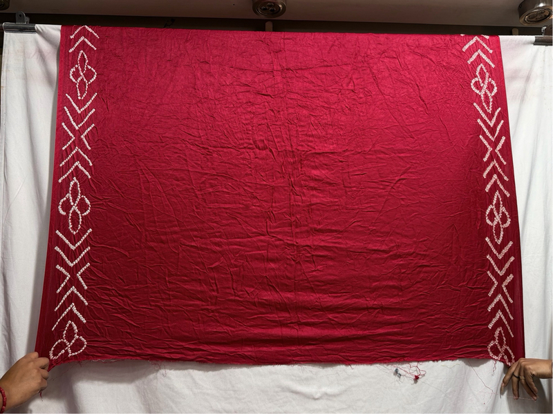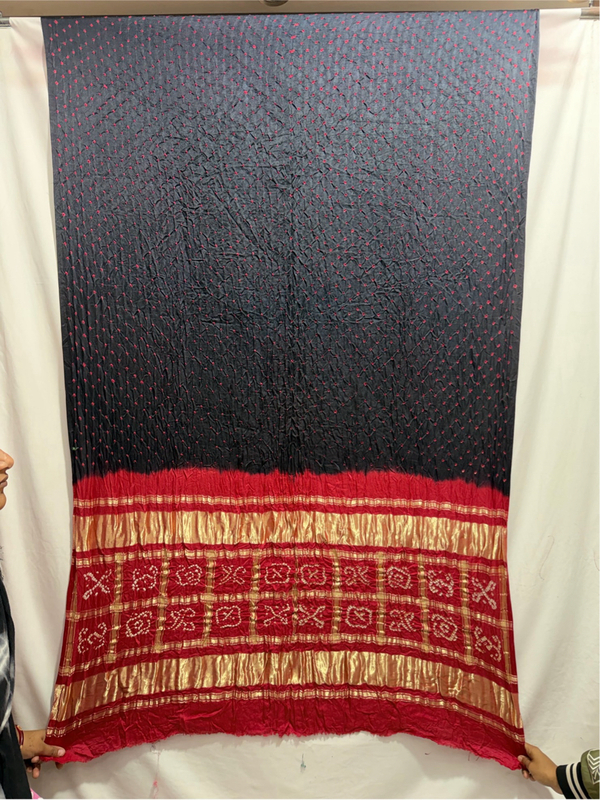- Color Story: Striking Light Red & Black complemented with Bandhej Craft & Creation.