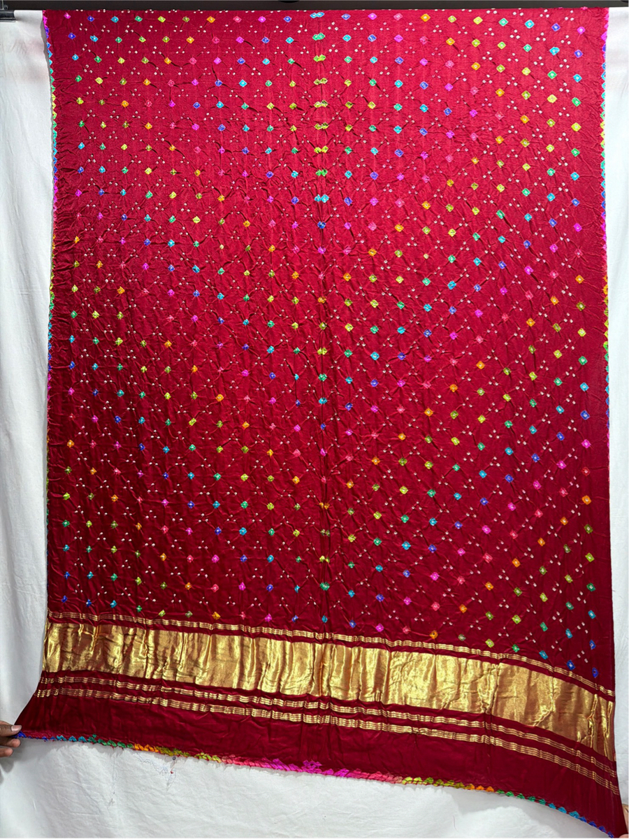 - Material: Crafted from premium Pure Gaji Silk with exquisite Hand Made Bandhani, offering a refined traditional look.