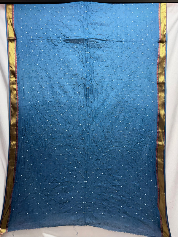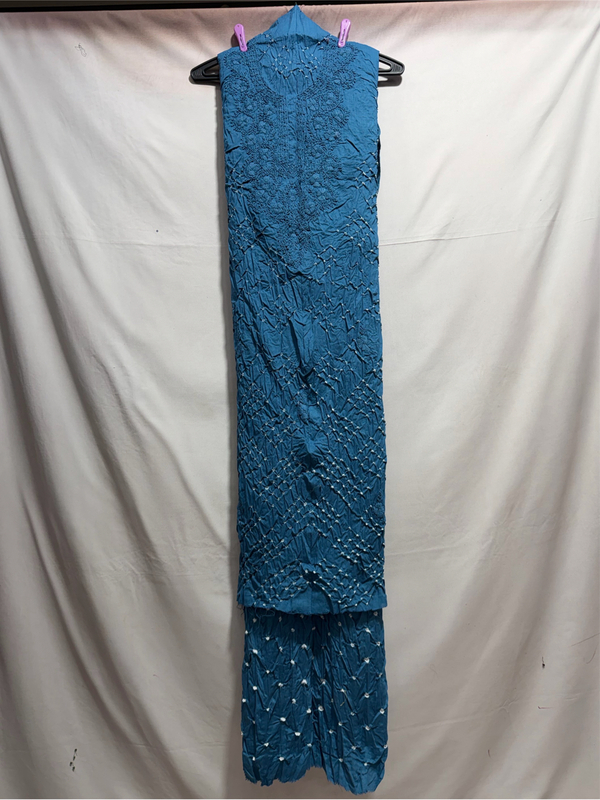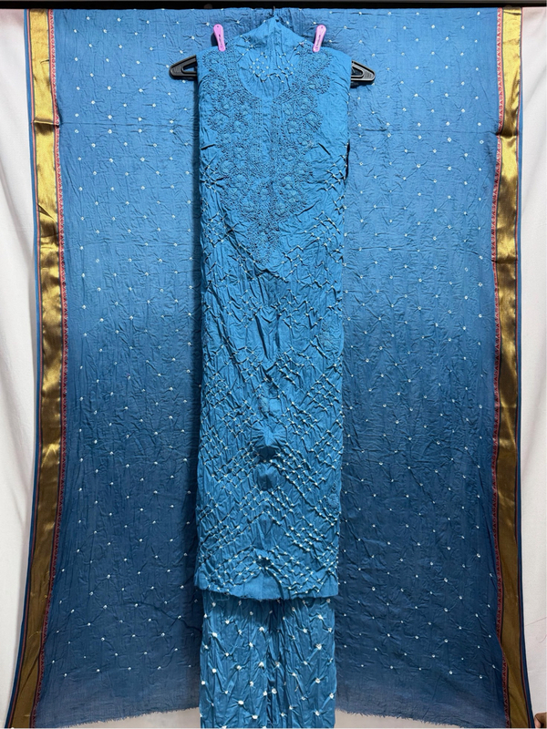 Kala Sanskruti Light Dark Indigo Color Heavy Cotton Satin Bandhani Dress With Work 2.5 M (Each Piece) Elegant Traditional Wear Dress Material for Women