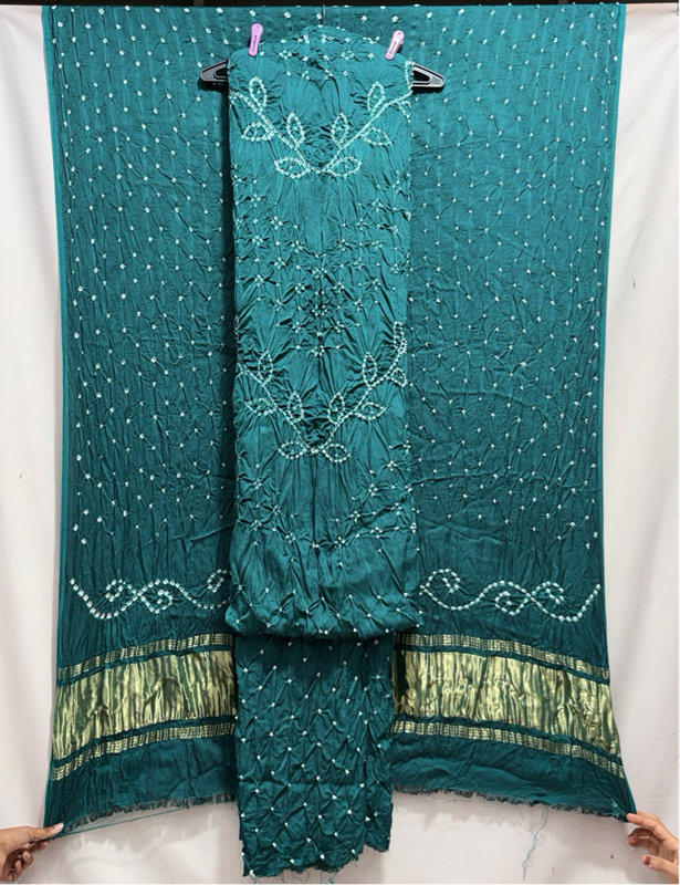 Kala Sanskruti All Over Rama Green Color Art Silk Bandhani Dress 2.5 M Each Piece Elegant Traditional Wear Art Silk Dress for Women